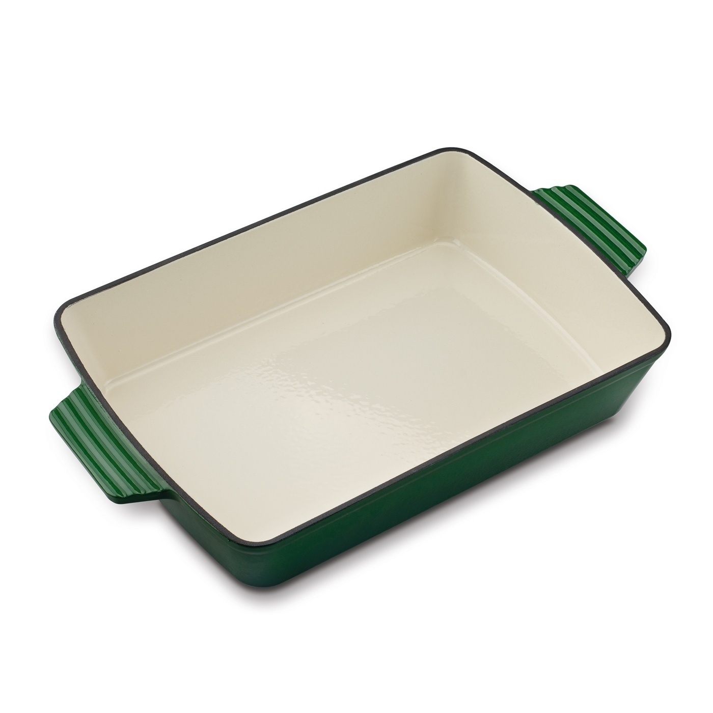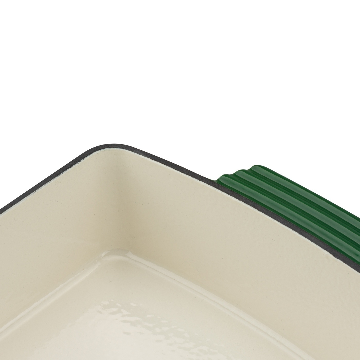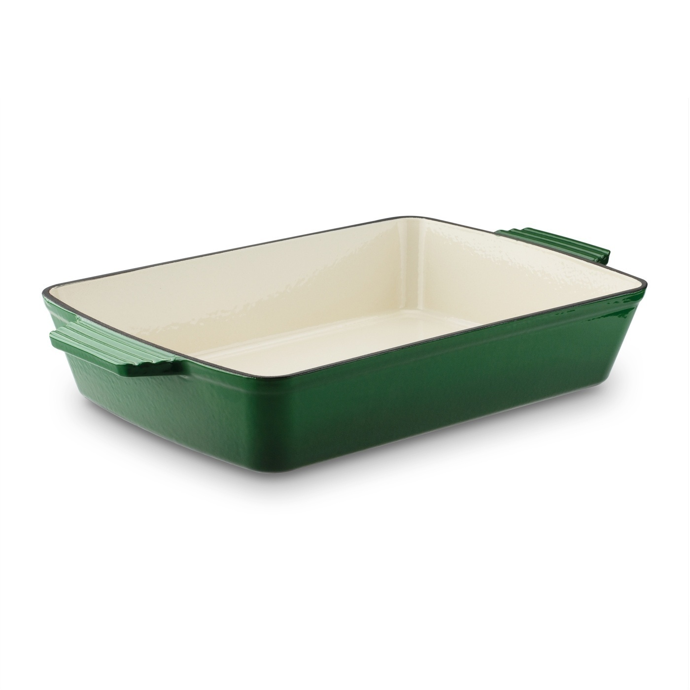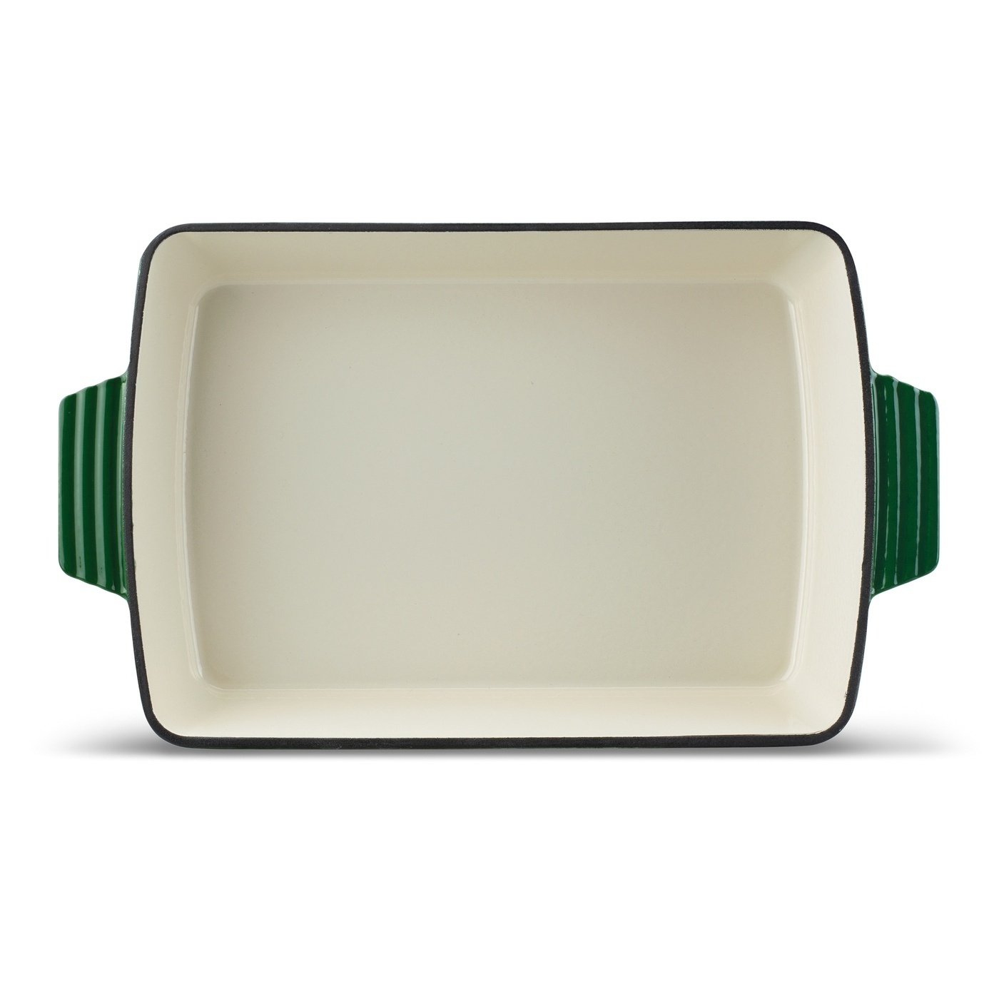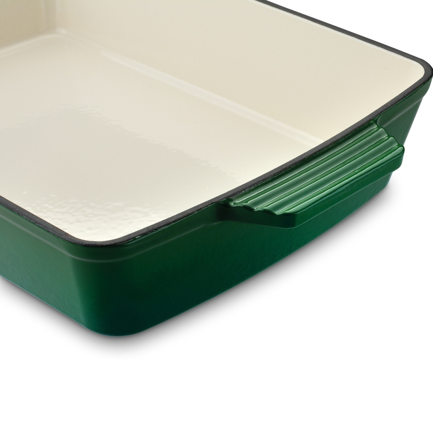 Fakt, trochę waży, ale ma też solidne uchwyty, które pozwolą ci BEZPIECZNIE wyjąć ją z piekarnika lub przenieść na stół. Z takim żeliwnym naczyniem prostokątnym do piekarnika bez wysiłku uzyskasz chrupiącą skórkę kaczki lub równomiernie zarumienisz pieczonego kurczaka. Stworzysz z nim NAJLEPSZE swojskie zapiekanki i dania jednobrytfannowe!