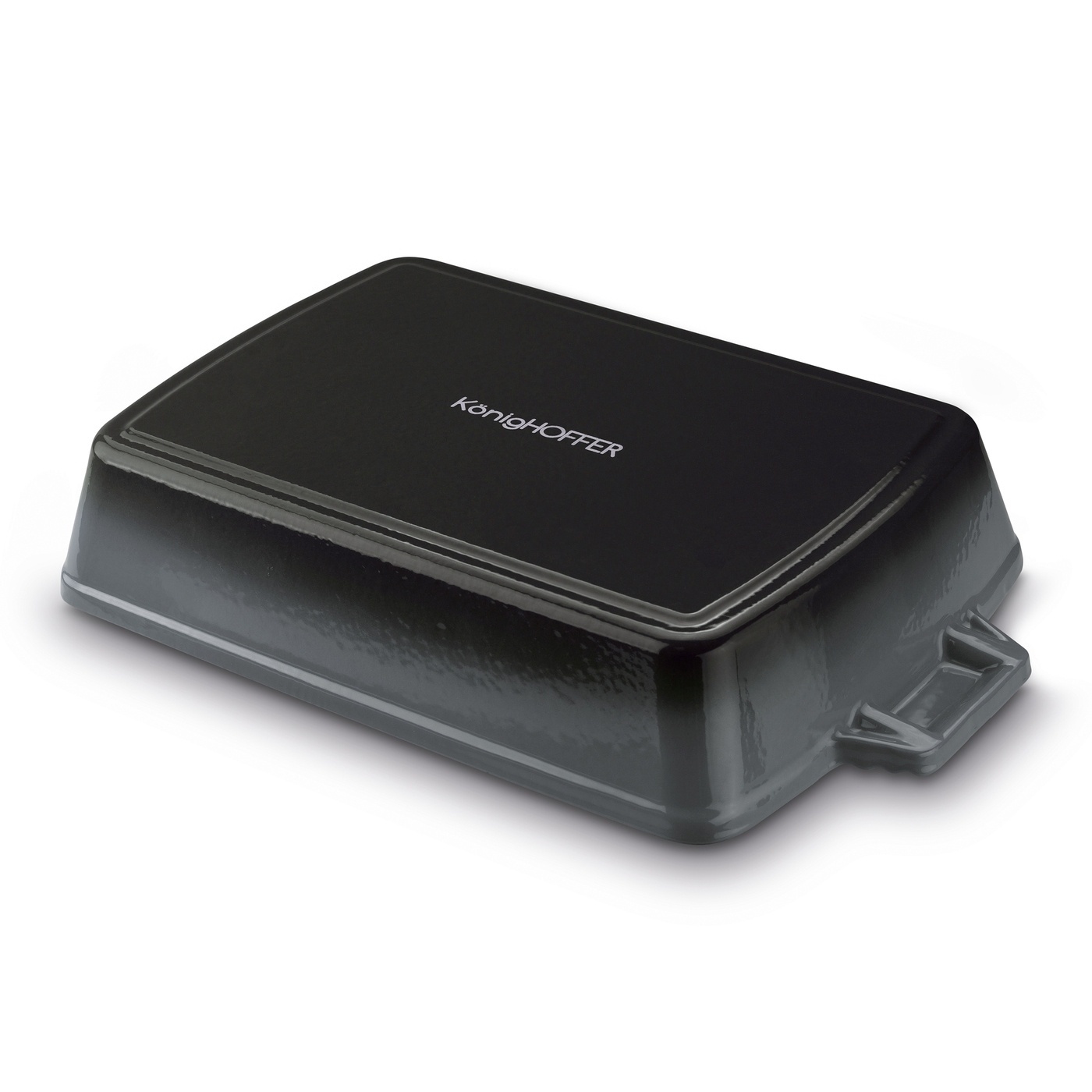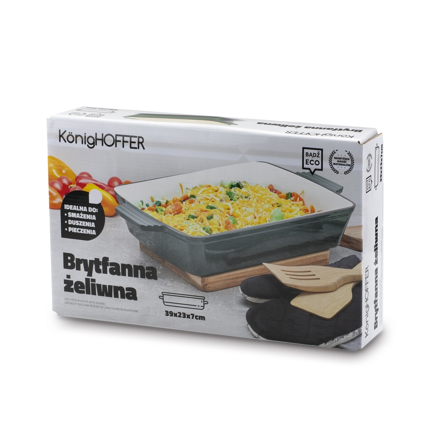 Stworzysz w niej kompozycje smaków, które wymagają czasu i cierpliwości. Użyte składniki będą chronione przed przywieraniem, gdyż wnętrze tej prostokątnej brytfanny Konighoffer pokryto nietoksyczną EMALIĄ. Naczynie z taką powłoką, poleca się dla alergików, osób starszych oraz do tworzenia potraw dla dzieci.