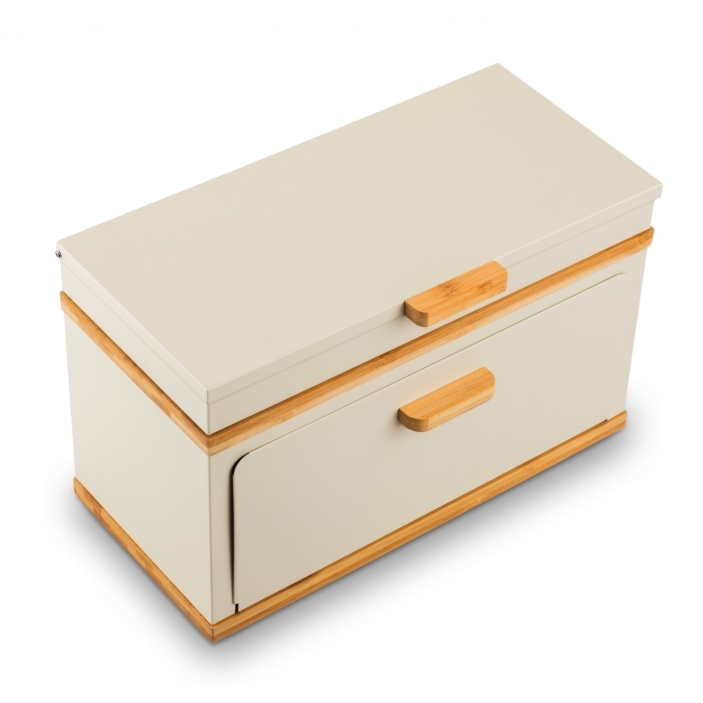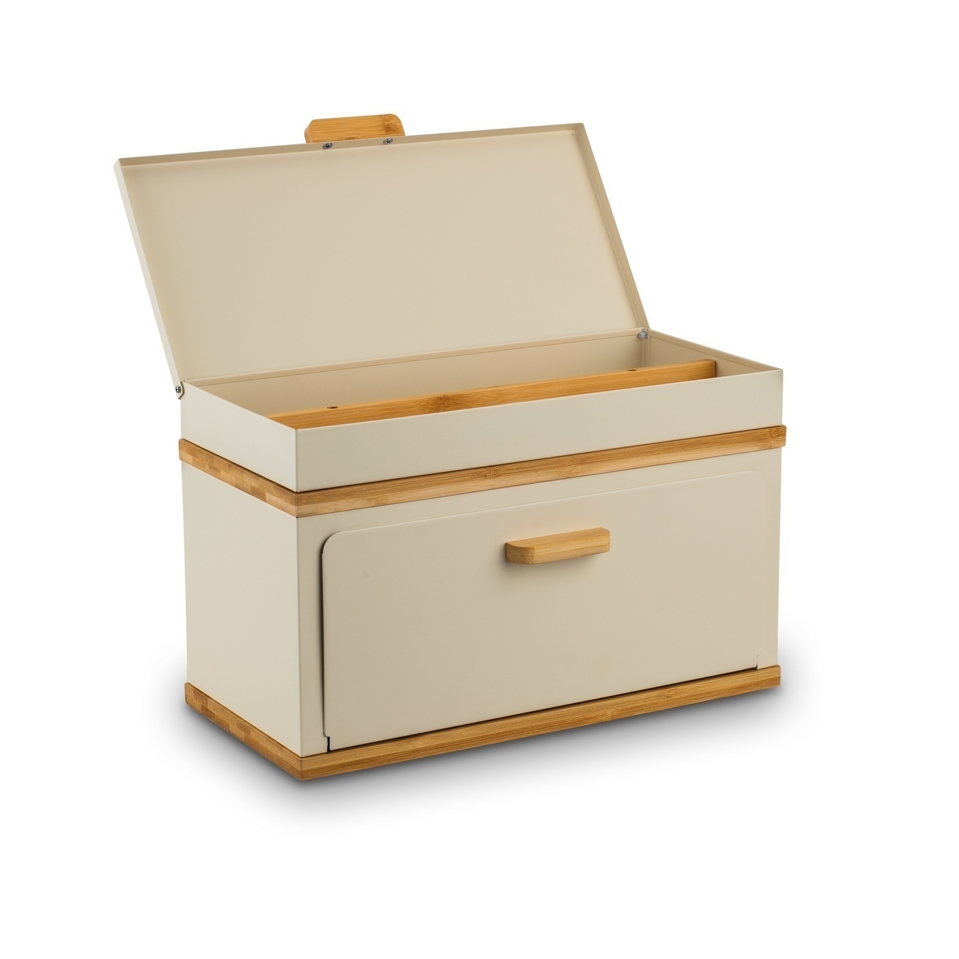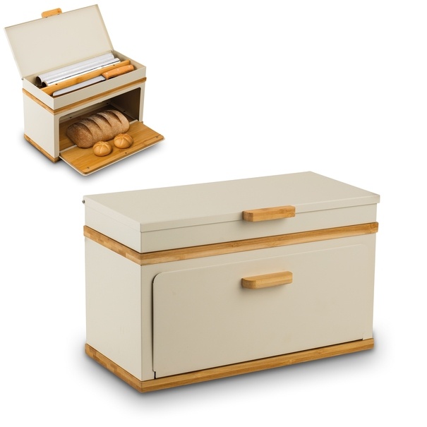 Dodatkowym atutem modelu Artesano jest wygodny schowek umieszczony w górnej części chlebaka. Umożliwia on przechowywanie folii aluminiowej, folii spożywczej lub papieru śniadaniowego. Wymiary przegród 8,5 x 37 x 4 cm oraz 8 x 37 x 4 cm zapewniają wygodny dostęp do akcesoriów kuchennych, jednocześnie pomagając utrzymać porządek na blacie.