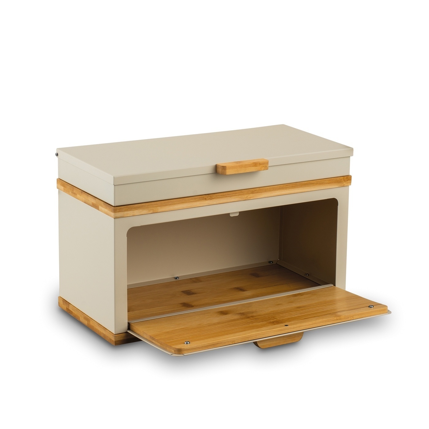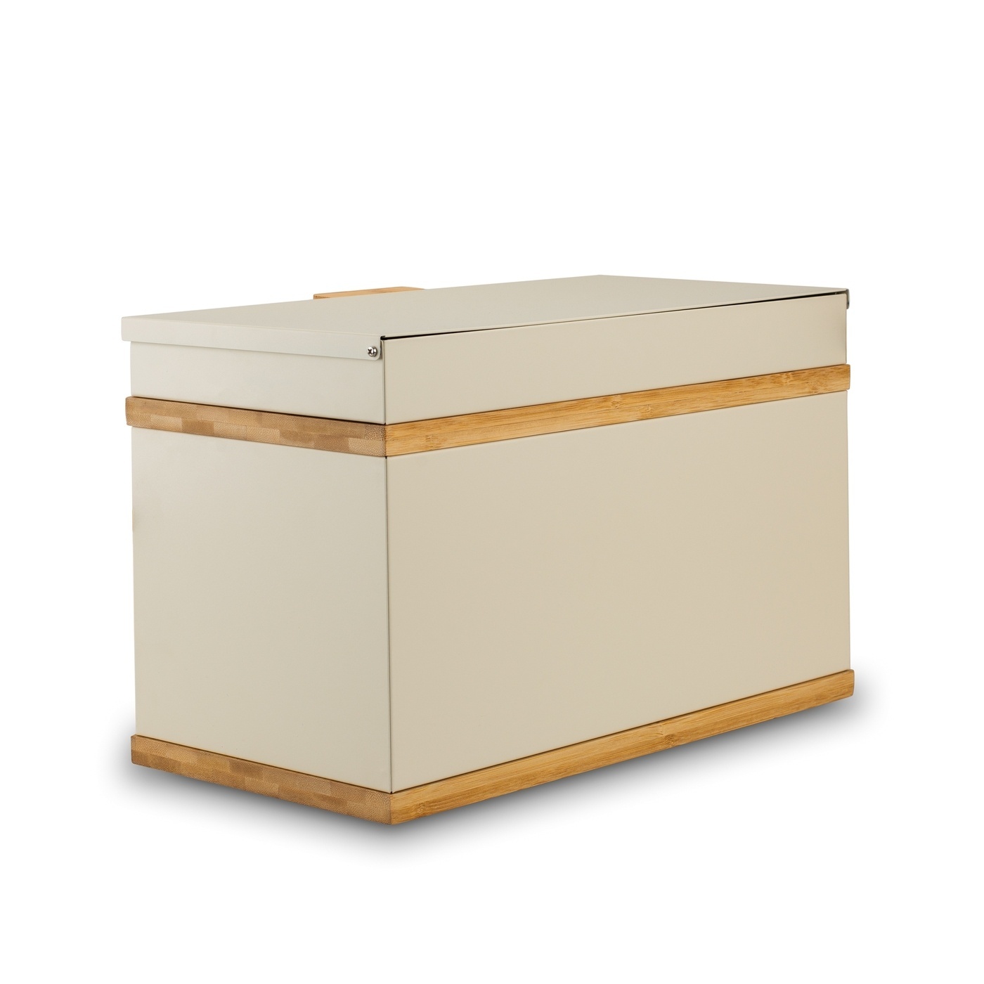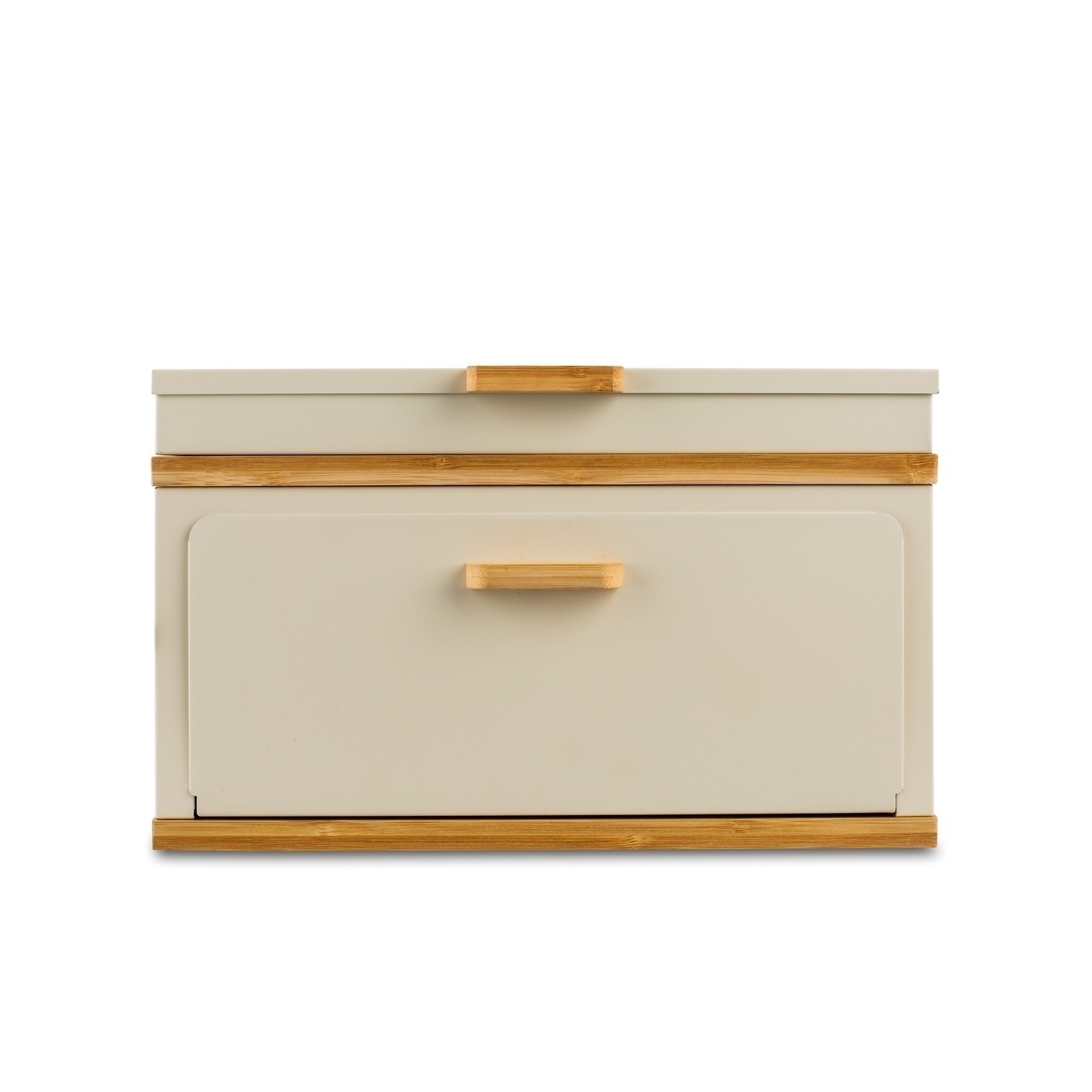Chlebak KonigHOFFER Artesano to połączenie praktycznej konstrukcji z estetyką inspirowaną naturalnymi materiałami. Korpus wykonano ze stali o matowym wykończeniu, a detale z bambusa nadają całości ciepłego, domowego charakteru. Kremowa kolorystyka sprawia, że chlebak doskonale wpisuje się zarówno w klasyczne, jak i nowoczesne aranżacje kuchenne.