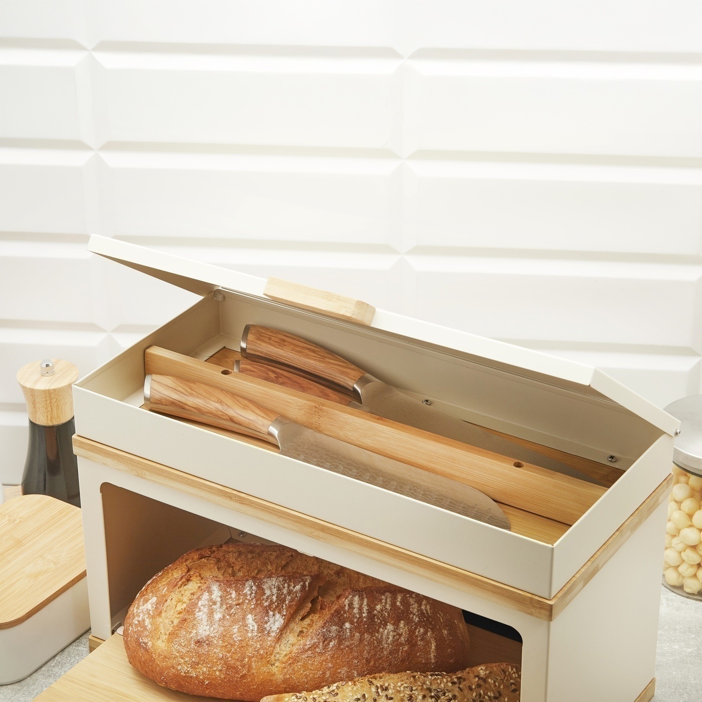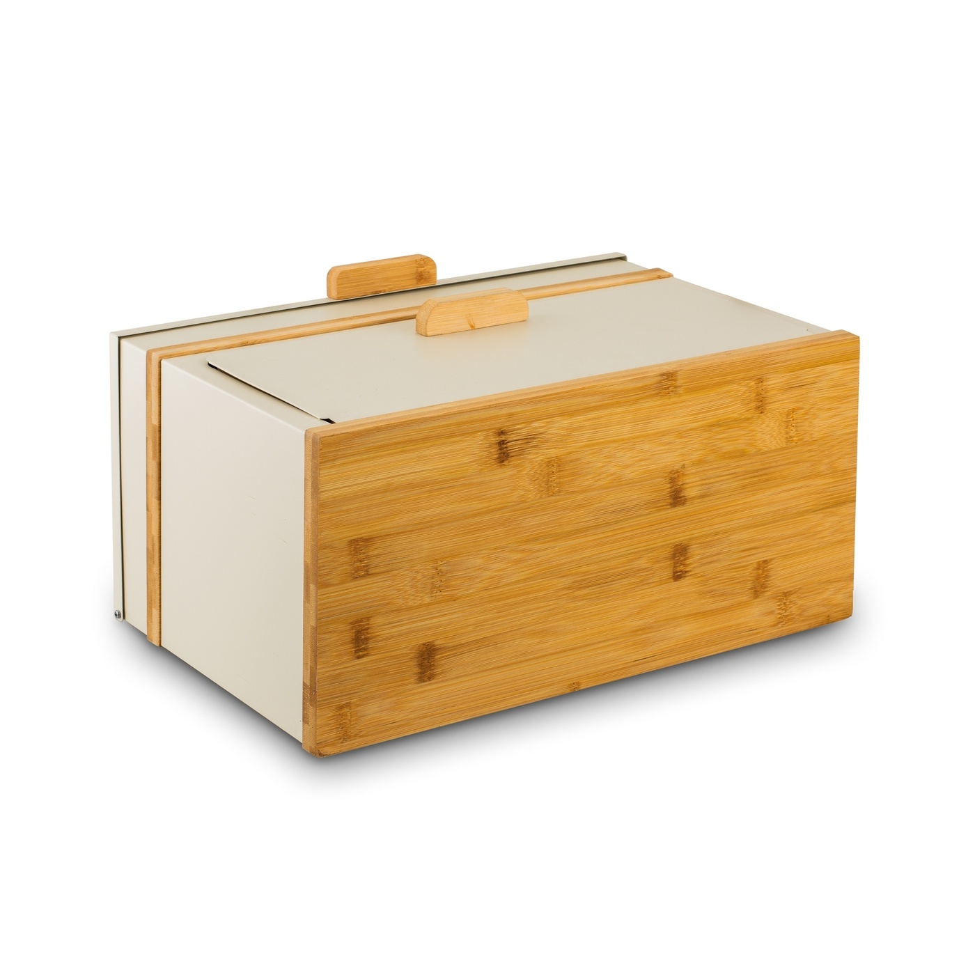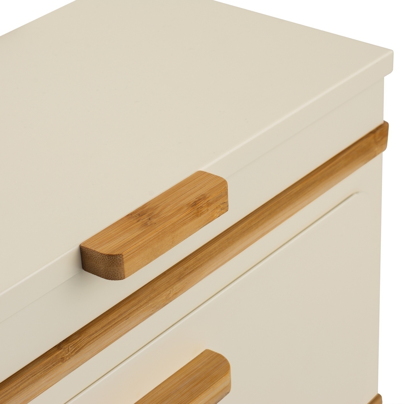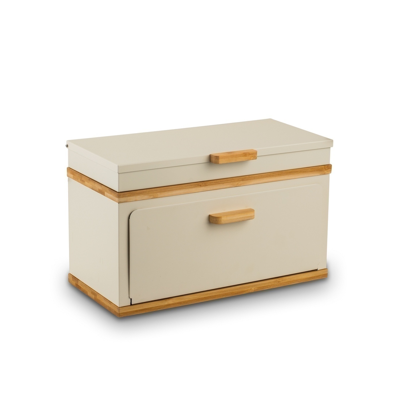 Chlebak KonigHOFFER Artesano to połączenie praktycznej konstrukcji z estetyką inspirowaną naturalnymi materiałami. Korpus wykonano ze stali o matowym wykończeniu, a detale z bambusa nadają całości ciepłego, domowego charakteru. Kremowa kolorystyka sprawia, że chlebak doskonale wpisuje się zarówno w klasyczne, jak i nowoczesne aranżacje kuchenne.