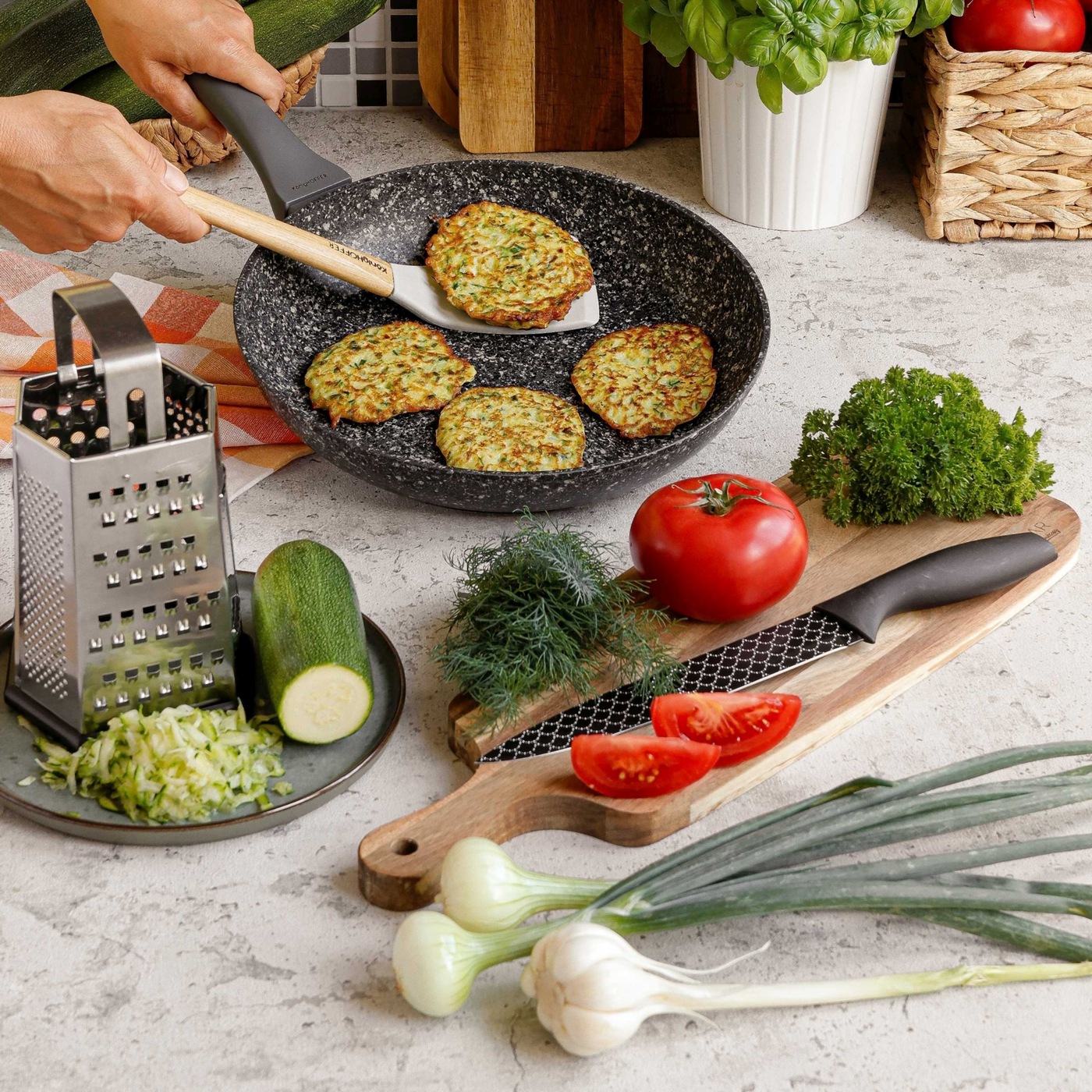 Zaprezentujesz jedzenie od najlepszej strony i z odrobiną rustykalnej elegancji. Podając je na twardym drewnie akacjowym, wzbogacisz wyjątkowy smak o apetyczne doznania wizualne. Na takiej desce kuchennej zaserwujesz przystawki na zimno lub ciepło.