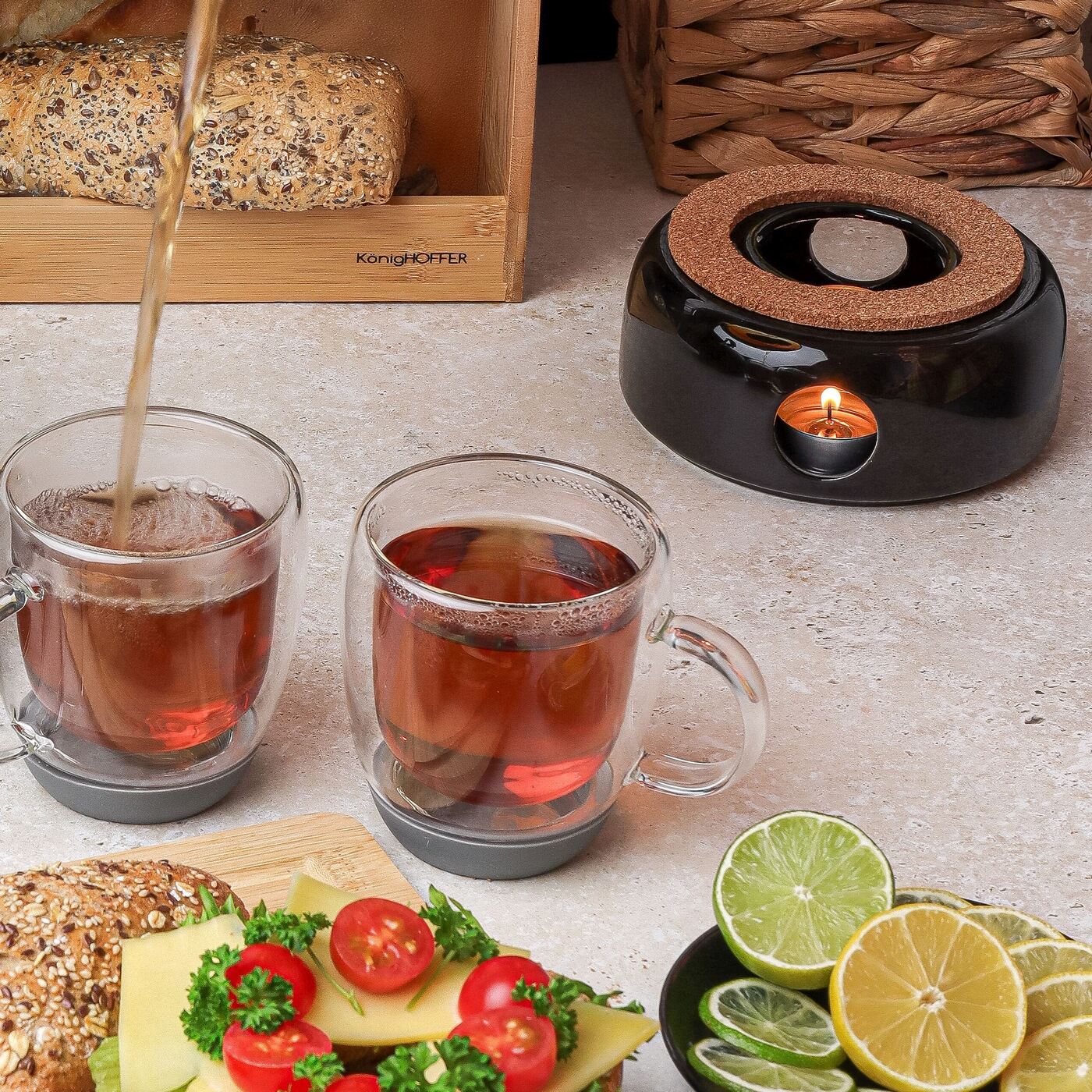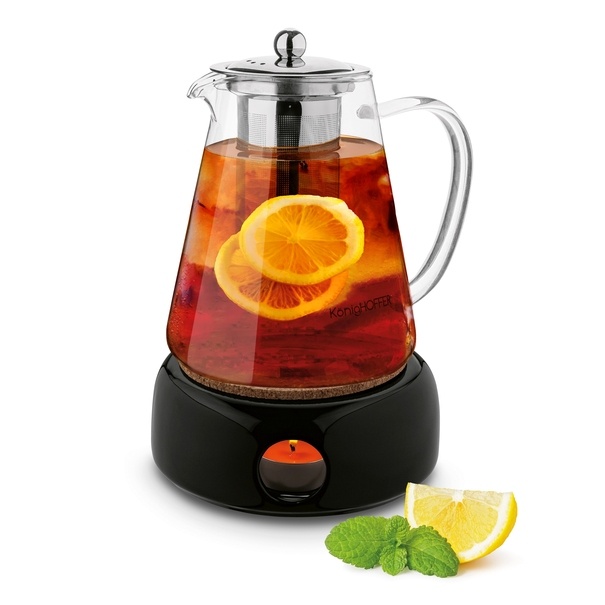 Bezpiecznie wlejesz do niego wrzątek. W projekcie dzbanka na herbatę Konighoffer Tibi 1,3 litra znajdziesz elegancję pełną współczesnych wyznaczników kanonu piękna. Szkło i stal - równie stylowe, co łatwe w pielęgnacji. Sam szklany dzbanek umyjesz w zmywarce! Podgrzewacz to model na pojedynczą świeczkę tealight. Stabilnie i bezpiecznie postawisz go na stole.