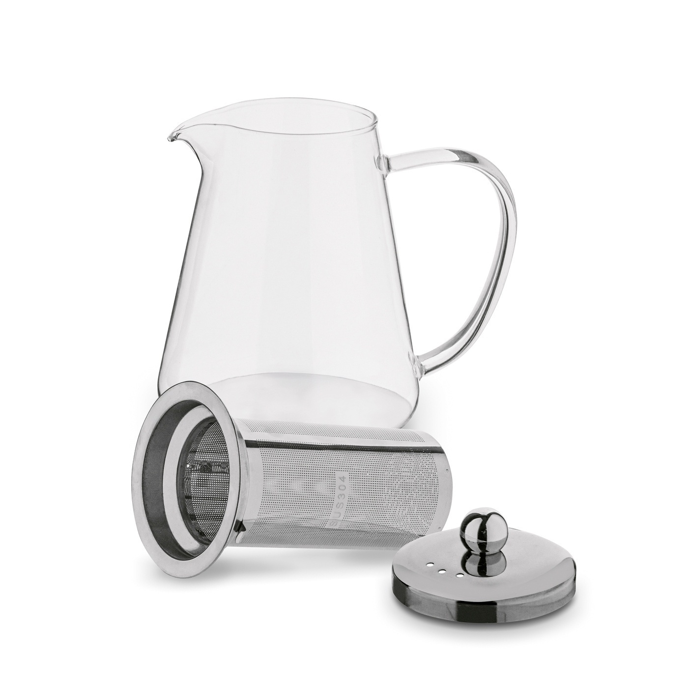 Metalowa pokrywa została zaprojektowana, by skutecznie chronić zawartość. Nierdzewny zaparzacz zatrzyma mokre liście herbaciane, listki mięty i kawałki owoców. Wylewka zapewni precyzję uzupełniania napojów w szklankach. Ergonomiczny uchwyt zadba o wygodę użytkowania i bezpieczeństwo.