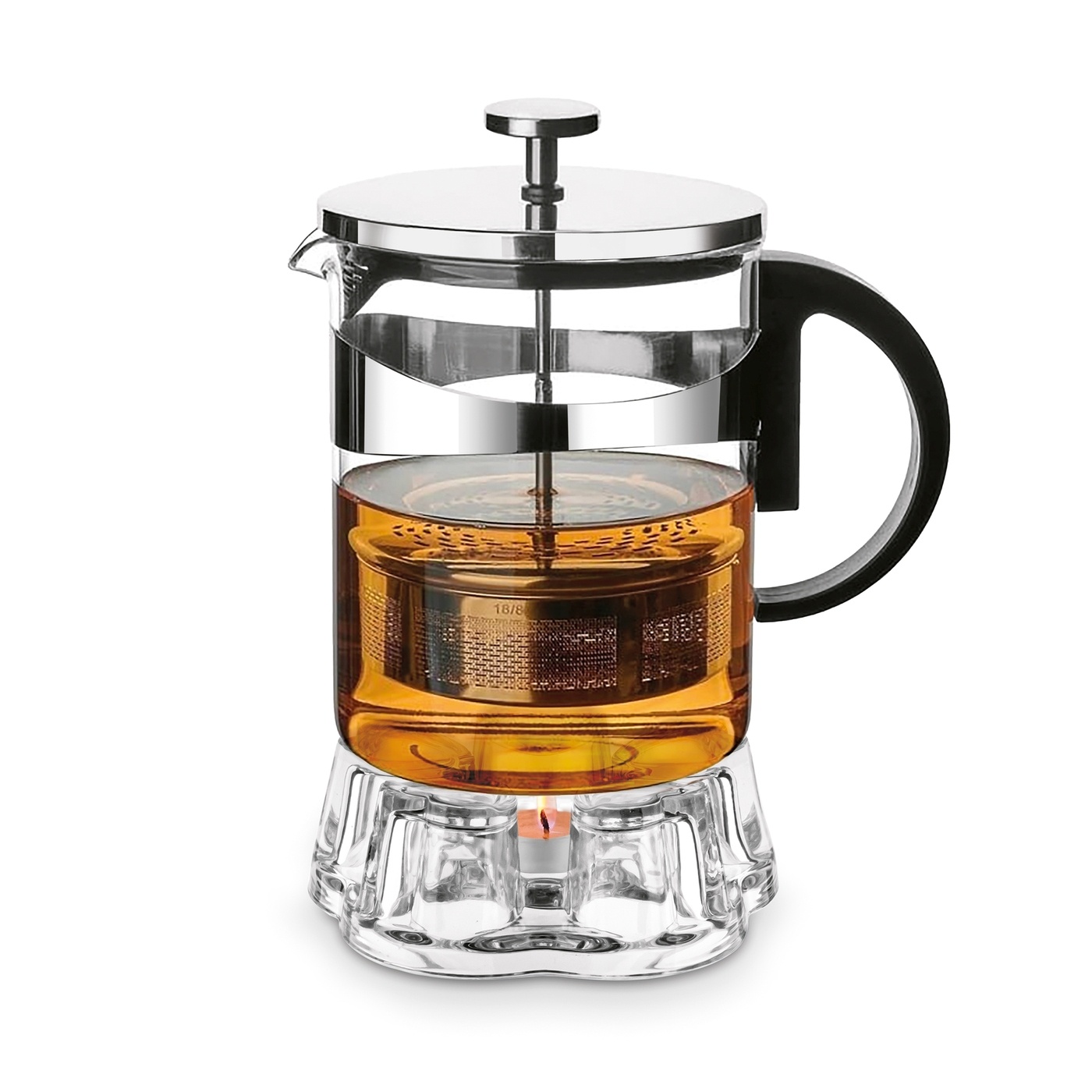 Dzbanek uzupełnia szklany podgrzewacz na świeczkę tealight, który pozwala utrzymać temperaturę napoju przez dłuższy czas. Jest to szczególnie przydatne podczas spotkań z rodziną lub gośćmi, gdy herbata ma pozostać ciepła bez konieczności ponownego podgrzewania.