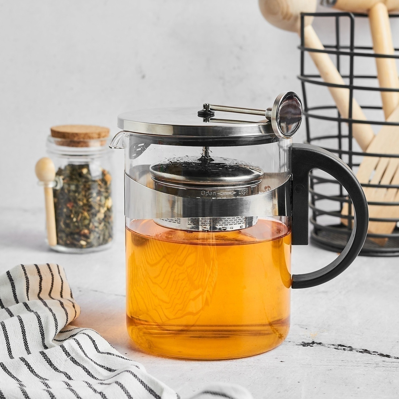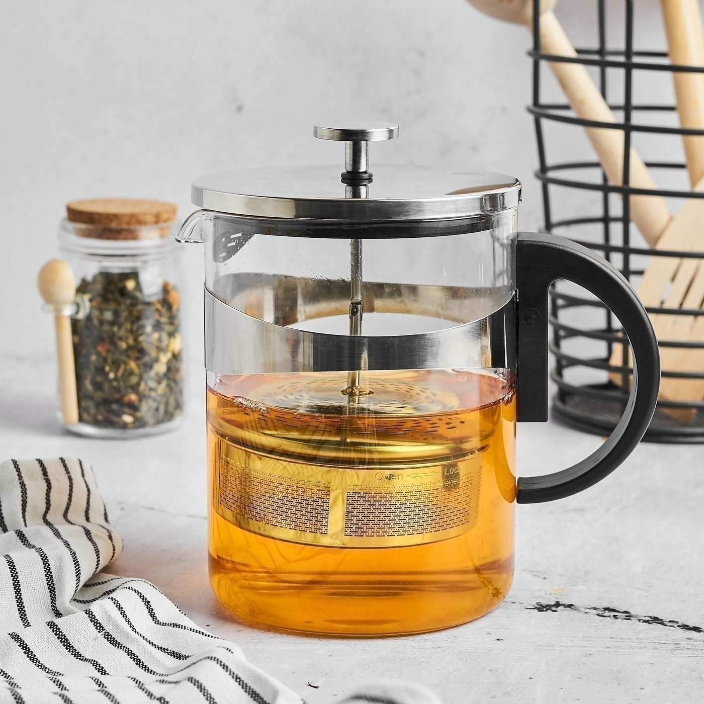 Wewnątrz znajduje się stalowy zaparzacz, który skutecznie oddziela liście herbaty od naparu. Dzięki drobnym otworom fusy nie przedostają się do filiżanki, a klarowny napój zachowuje pełnię smaku i aromatu. Wyjmowana konstrukcja zaparzacza umożliwia łatwe czyszczenie oraz kontrolę intensywności parzenia.