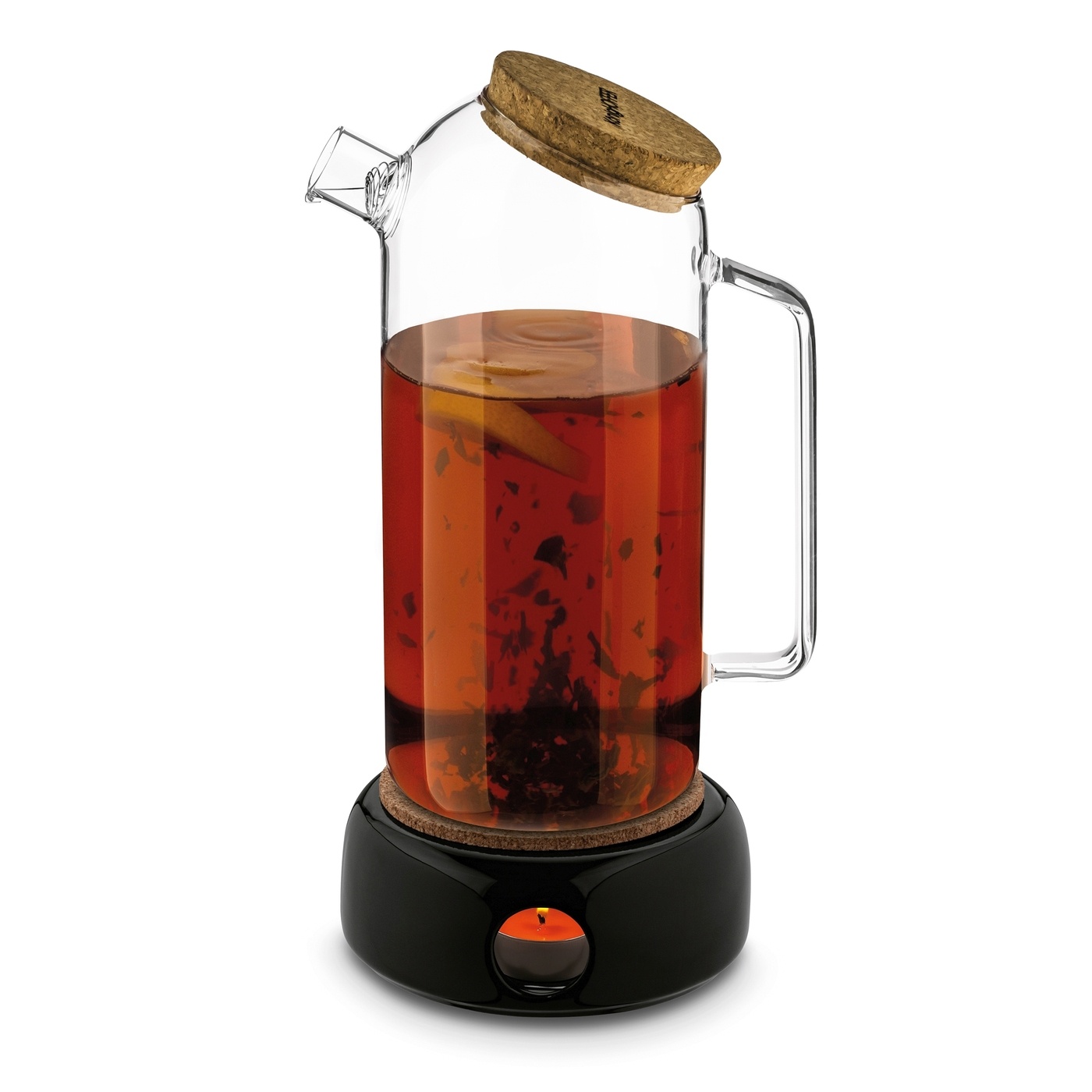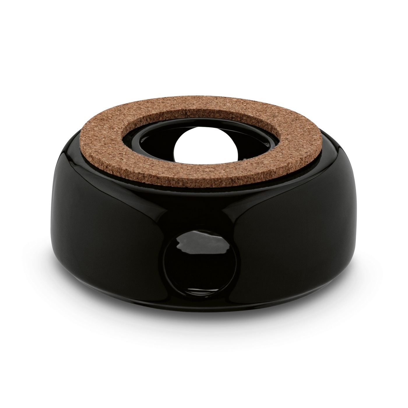 Dzbanek szklany Nexo możesz też bezpiecznie ustawić na dołączonym podgrzewaczu ceramicznym. Jest on czarny, okrągły i dla komfortu użytkowania wykończono go korkiem. To podstawka pod dzbanek na jedną świeczkę tealight. Dzięki niej utrzymasz optymalną temperaturę herbaty przez wiele godzin.