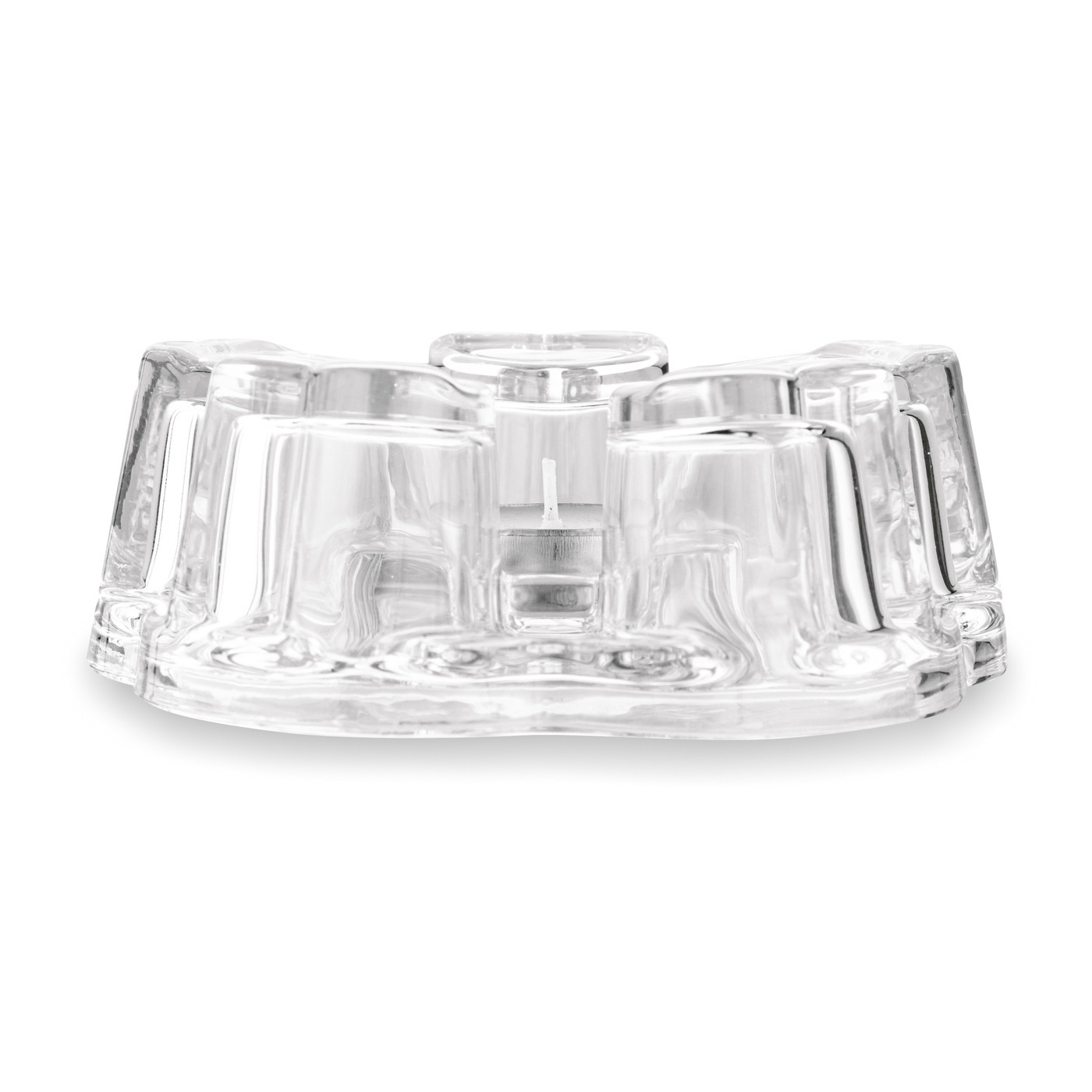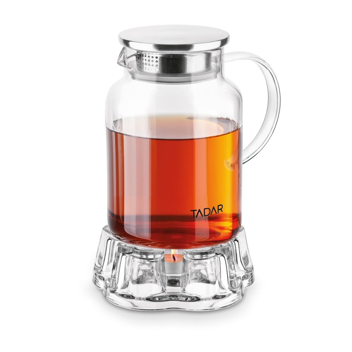 Uzupełnieniem zestawu jest szklany podgrzewacz na świeczkę typu tealight. Umożliwia on ustawienie dzbanka nad delikatnym źródłem ciepła, co pozwala dłużej utrzymać temperaturę przygotowanego napoju bez konieczności ponownego podgrzewania.