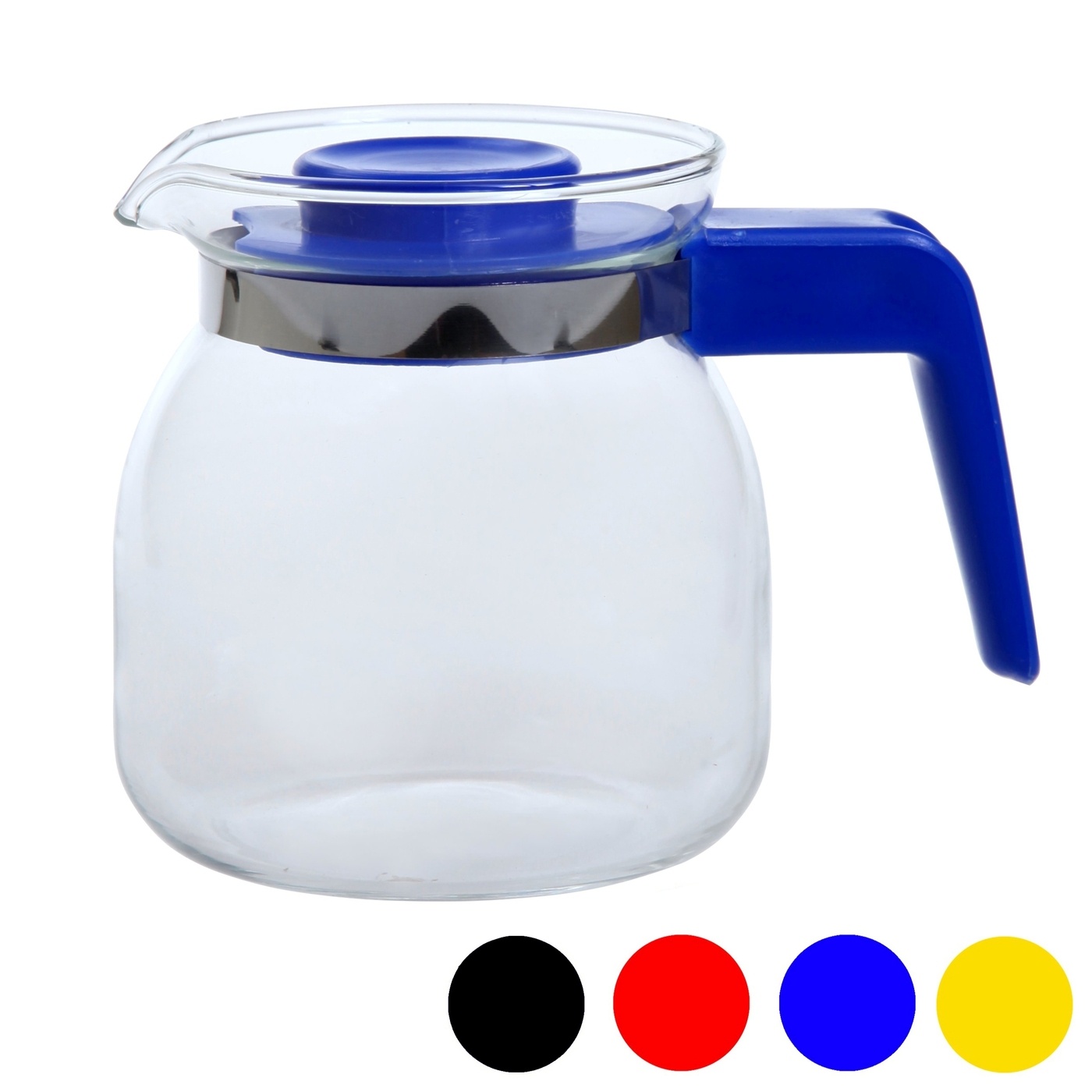 - dzbanek z transparentnego, żaroodpornego szkła - średnica dolna: 9 cm - średnica wlewu: 6 cm - długość dzbanka z uchwytem: 13 cm - pokrywka dzbanka wykonana z tworzywa sztucznego występuje w mixie kolorystycznym: czarny, czerwony, niebieski, żółty - kolor pokrywki wysłany losowo |