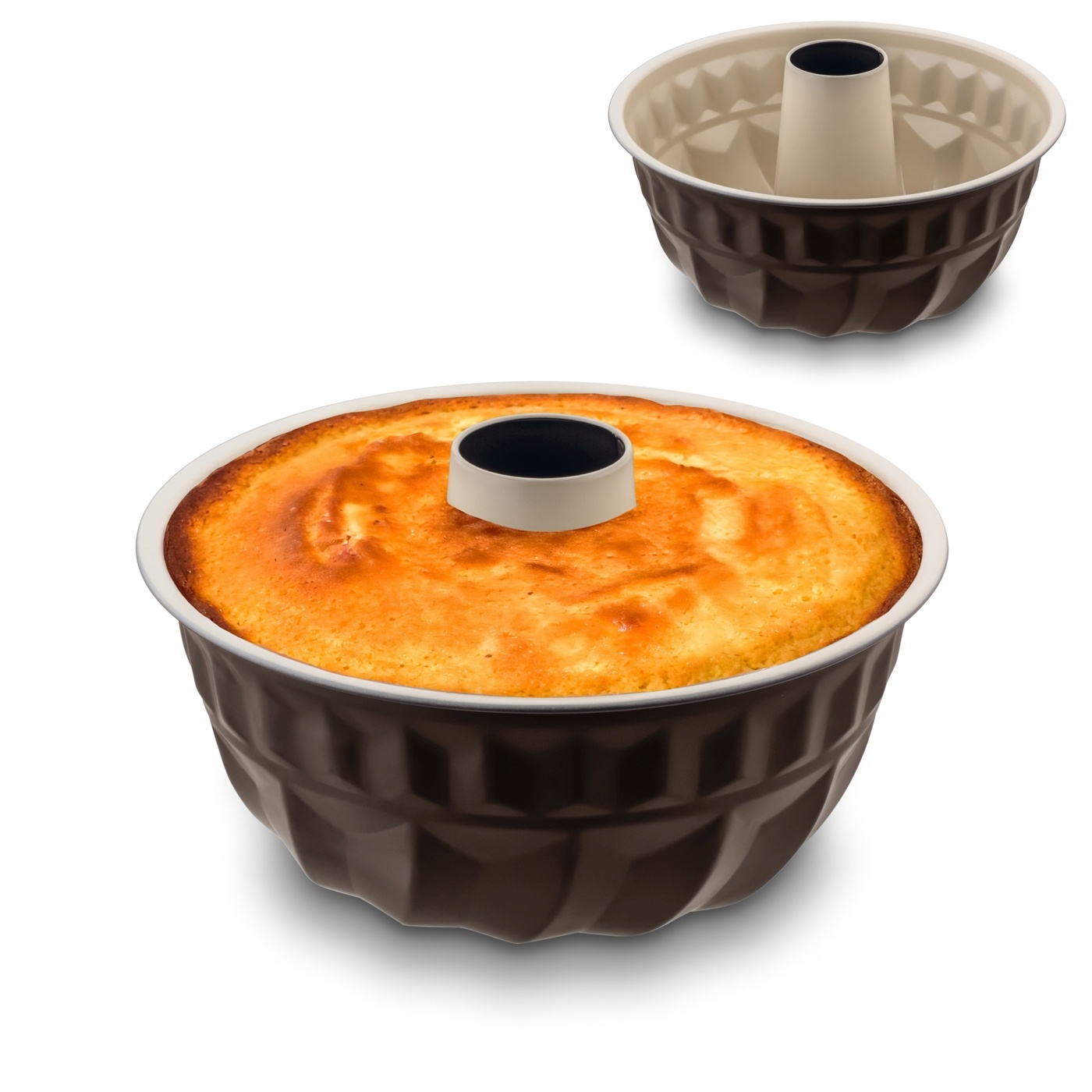 Forma do pieczenia babki Tadar została zaprojektowana z myślą o równomiernym wypiekaniu ciast. Dzięki zastosowaniu centralnej tulei ciepło rozprowadzane jest równomiernie w całej masie, co pozwala uzyskać idealnie wypieczone wnętrze oraz złocistą powierzchnię.