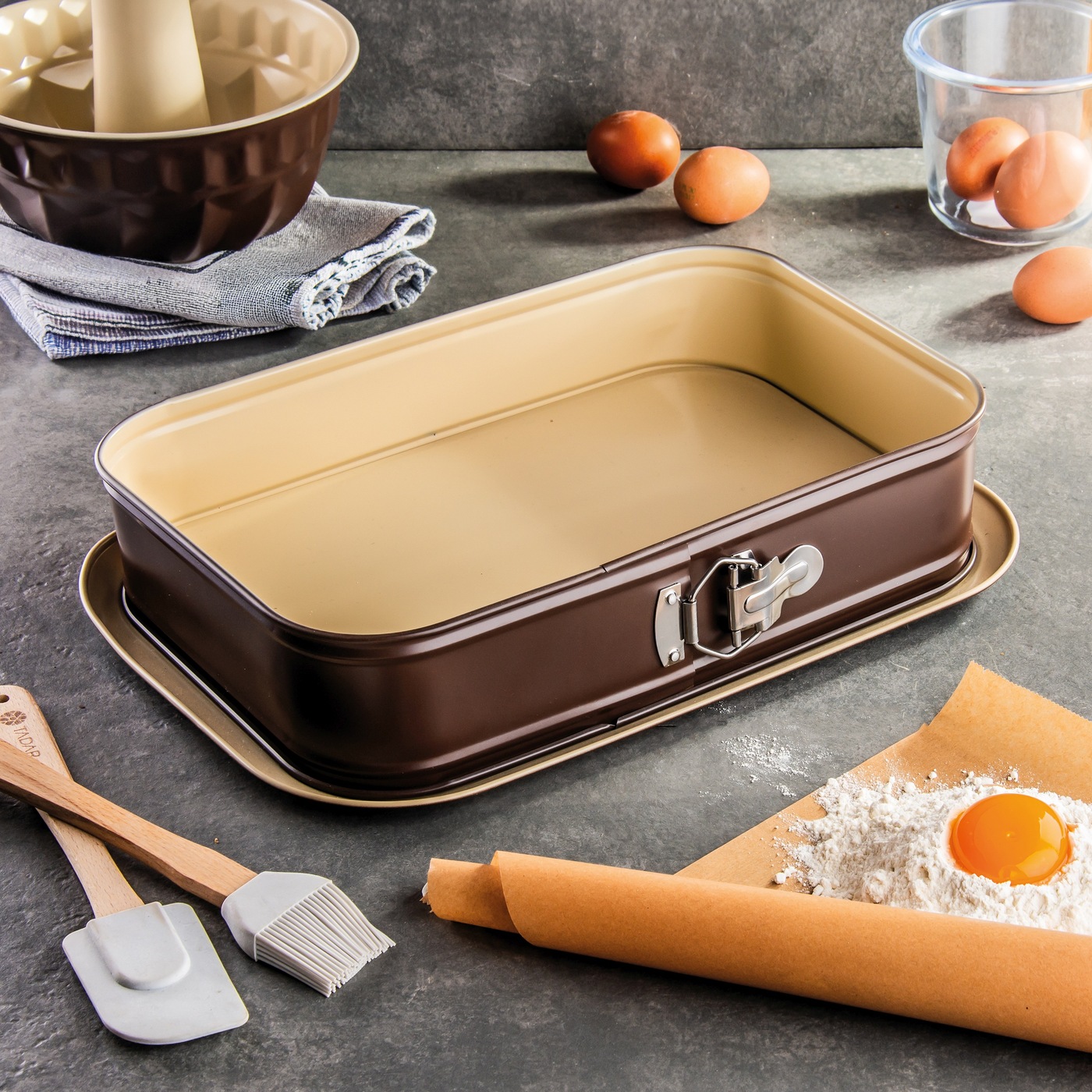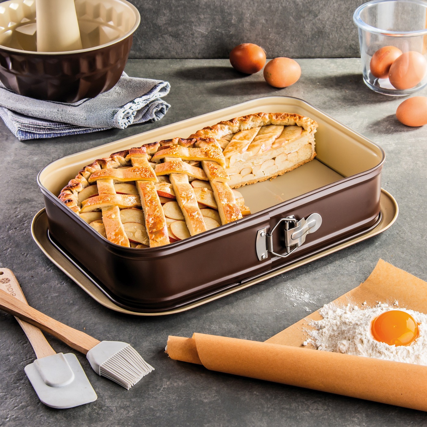 Prostokątna forma do pieczenia Tadar została zaprojektowana z myślą o komfortowym przygotowywaniu domowych wypieków. Jej klasyczny kształt doskonale sprawdzi się do pieczenia serników, biszkoptów, ciast przekładanych oraz deserów na zimno. Wysokie ranty pozwalają na przygotowanie wypieków o większej objętości.