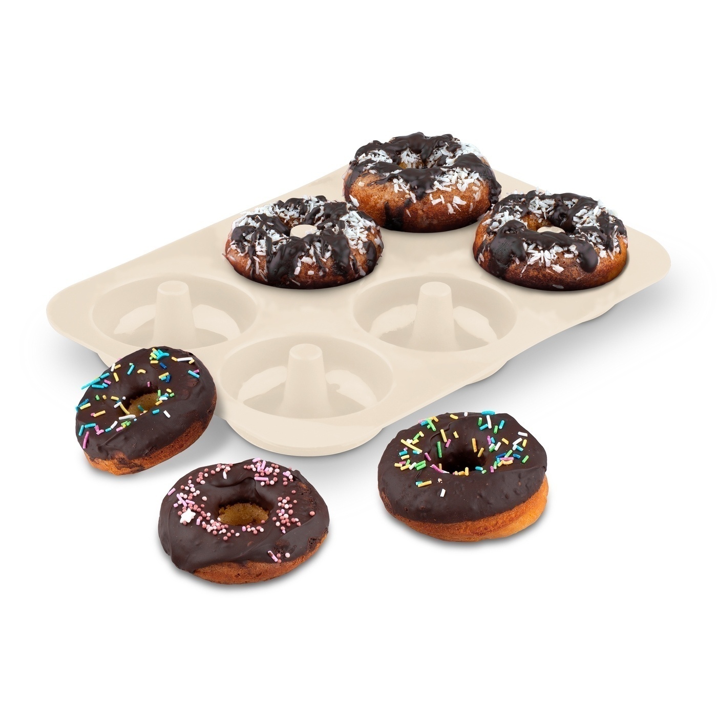 Prezentowana forma pozwala przygotować 6 równych donatów (pączków z dziurką). Po upieczeniu podasz je z przyjemnością do kawy lub herbaty. Samodzielnie stworzysz też idealnie wypieczony oraz puszysty deser dla całej rodziny.