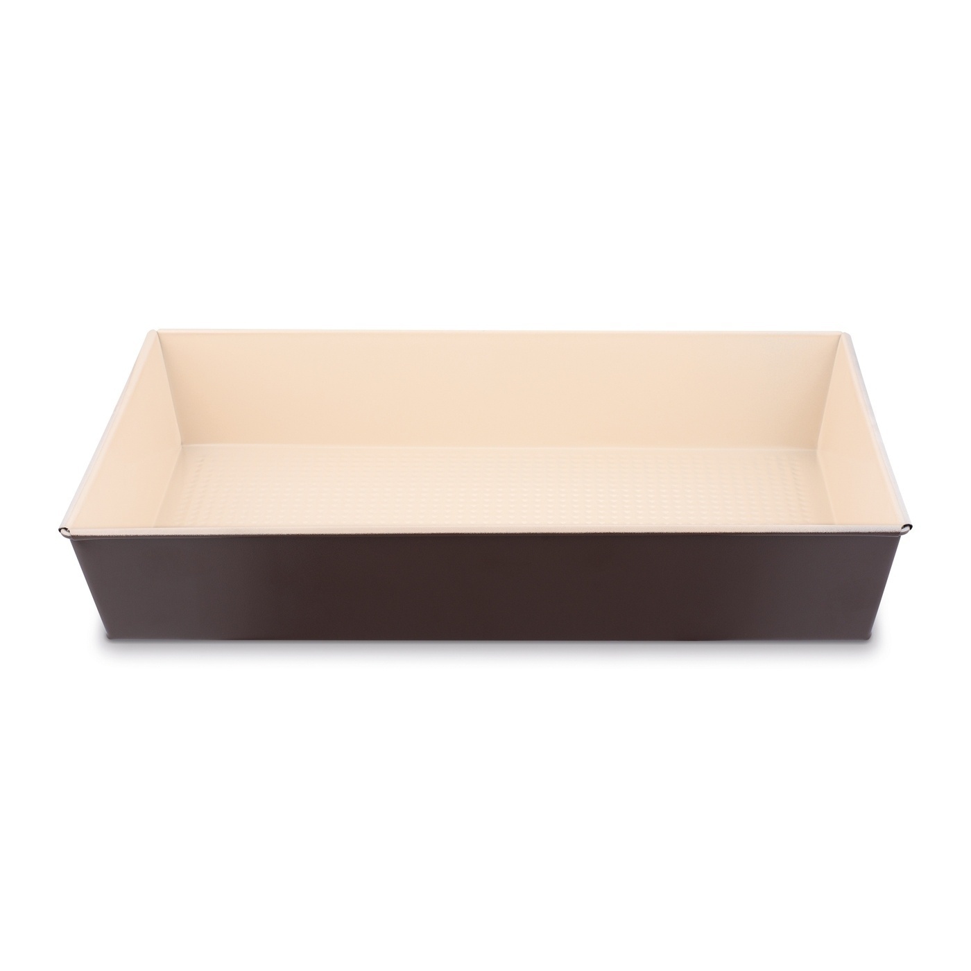 Prostokątna forma do pieczenia Tadar pokryta jest powłoką ceramiczną. Ciasta i zapiekanki dzięki temu do niej nie będą przywierały. Ułatwi ci to pielęgnacje blaszki i wyeliminuje konieczność jej szorowania.