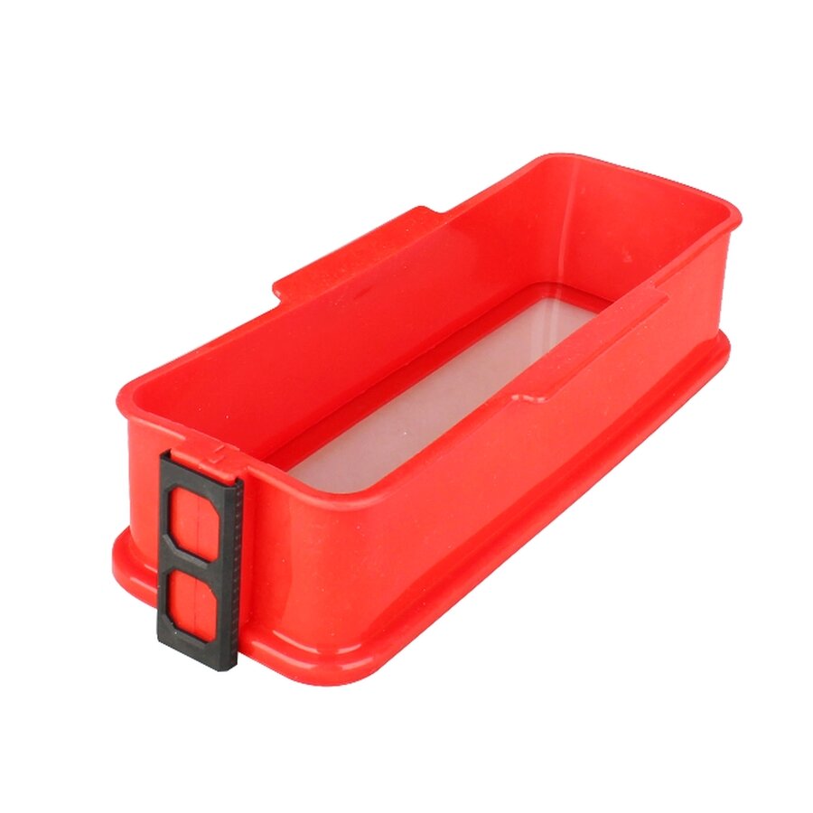 - szerokość całkowita ( z uchwytami ): 12 cm - szerokość bez uchwytów: 11 cm - transparentne, szklane dno - szklane dno, wymiar: 27,7 x 10,6 cm - czerwone uchwyty z tworzywa sztucznego - uchwyt, wymiar: 10 x 1,5 cm - otwieranie i zamknięcie formy na klips - kształt: prostokątny - zakres temperatur: - 20°C do + 180°C - wykończenie zewnętrzne: połysk |