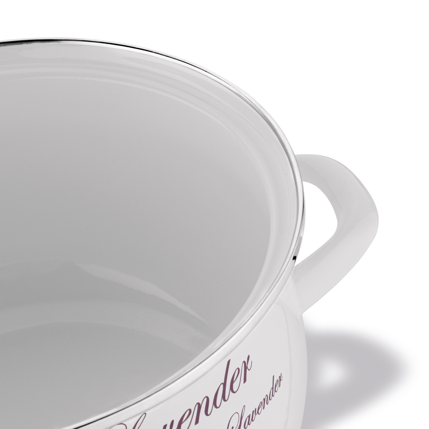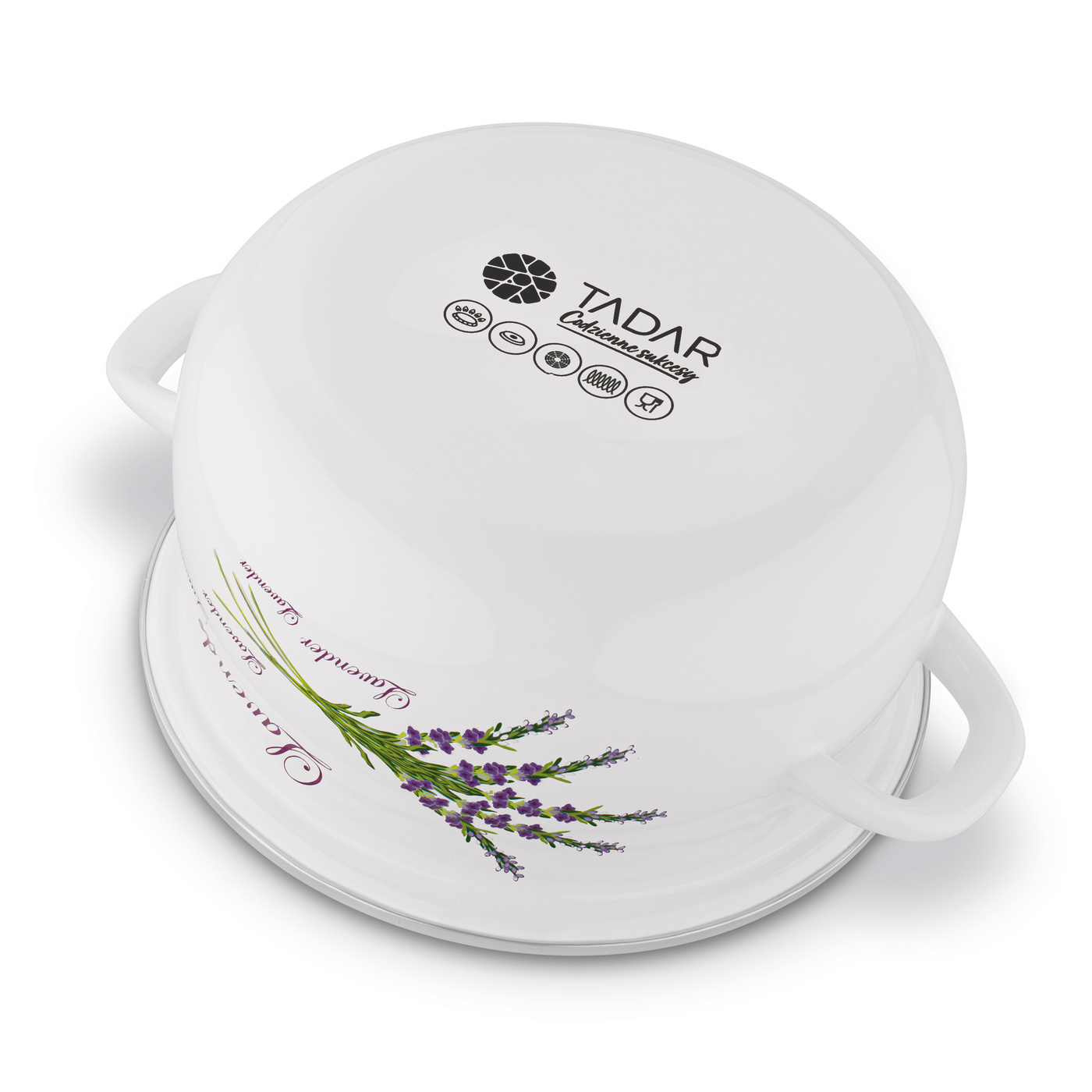 Model wyróżnia się subtelnym designem. Grafika lawenda nadaje mu lekki, dekoracyjny charakter inspirowany kuchnią prowansalską. Garnek prezentuje się estetycznie zarówno na kuchence, jak i na blacie.