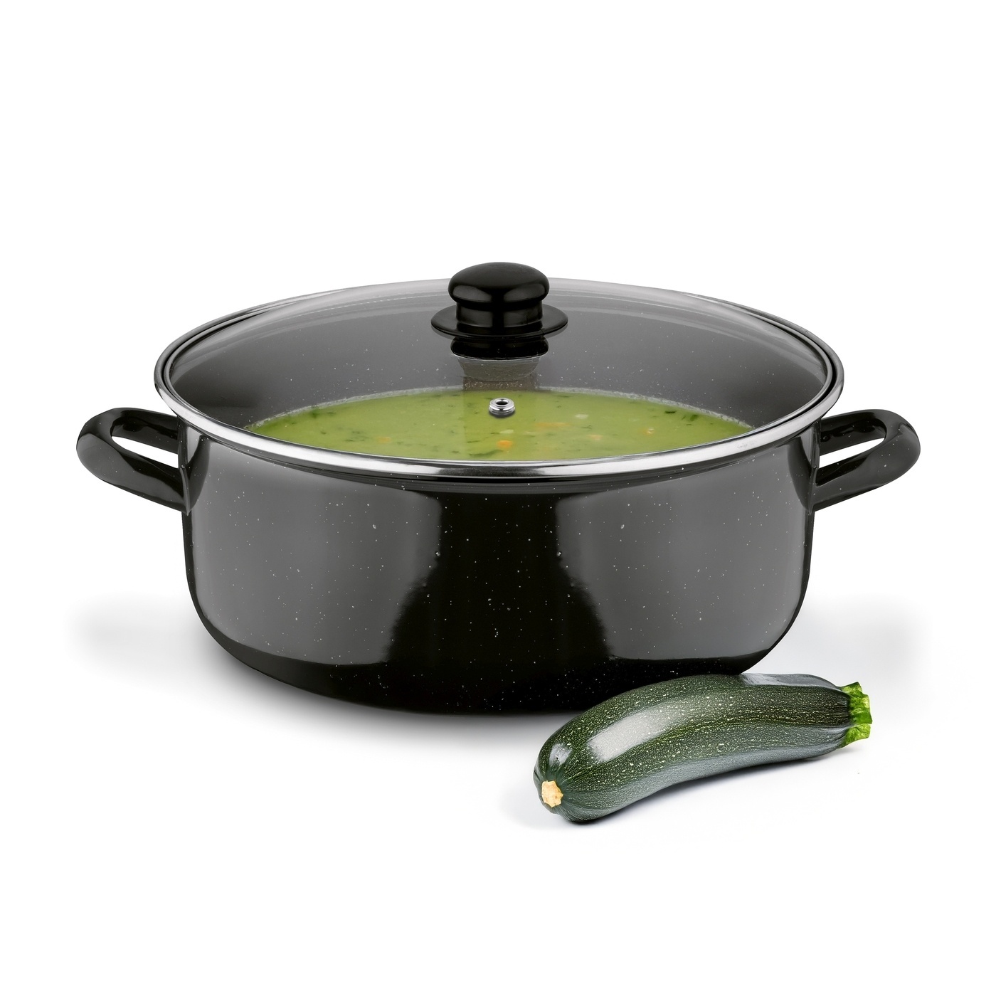 - garnek wykonany ze stali węglowej, emaliowany - pokrywa szklana ze stalowym rantem i odpowietrznikiem - uchwyt pokrywy z tworzywa sztucznego, przykręcany - wysokość garnka bez pokrywy: 12 cm - garnek bez pokrywy można używać w piekarniku - maksymalna temperatura użytkowania: 200 st. C |