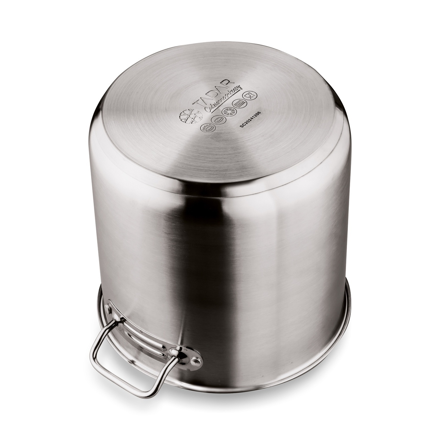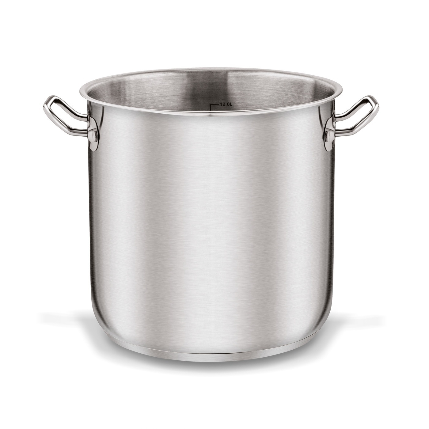 - garnek wykonany z wysokiej jakości stali nierdzewnej - wykończenie zewnętrzne: satyna - skala litrażu - pokrywa stalowa, wykończenie: połysk - uchwyty stalowe, wykończenie: połysk - uchwyty nitowane - wysokość garnka bez pokrywy: 26,5 cm - pojemność całkowita: 13,4 l - pojemność użytkowa: 12 l - w przypadku nadmiernego nagrzania się naczynia należy użyć rękawic kuchennych |