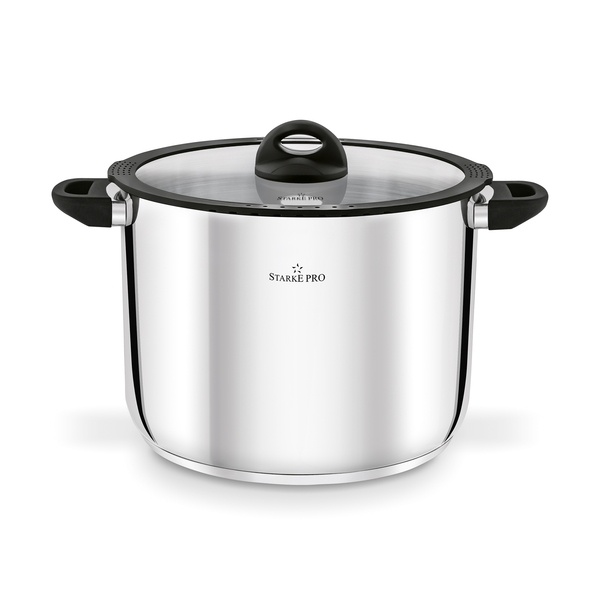 Garnek Starke Pro Sante o pojemności 12 litrów to solidne i praktyczne naczynie przeznaczone do przygotowywania większych porcji potraw. Doskonale sprawdzi się podczas gotowania zup, rosołu, bigosu, gulaszu czy makaronu dla całej rodziny. Duża pojemność pozwala wygodnie przygotować posiłki na kilka dni lub na większe spotkania rodzinne.