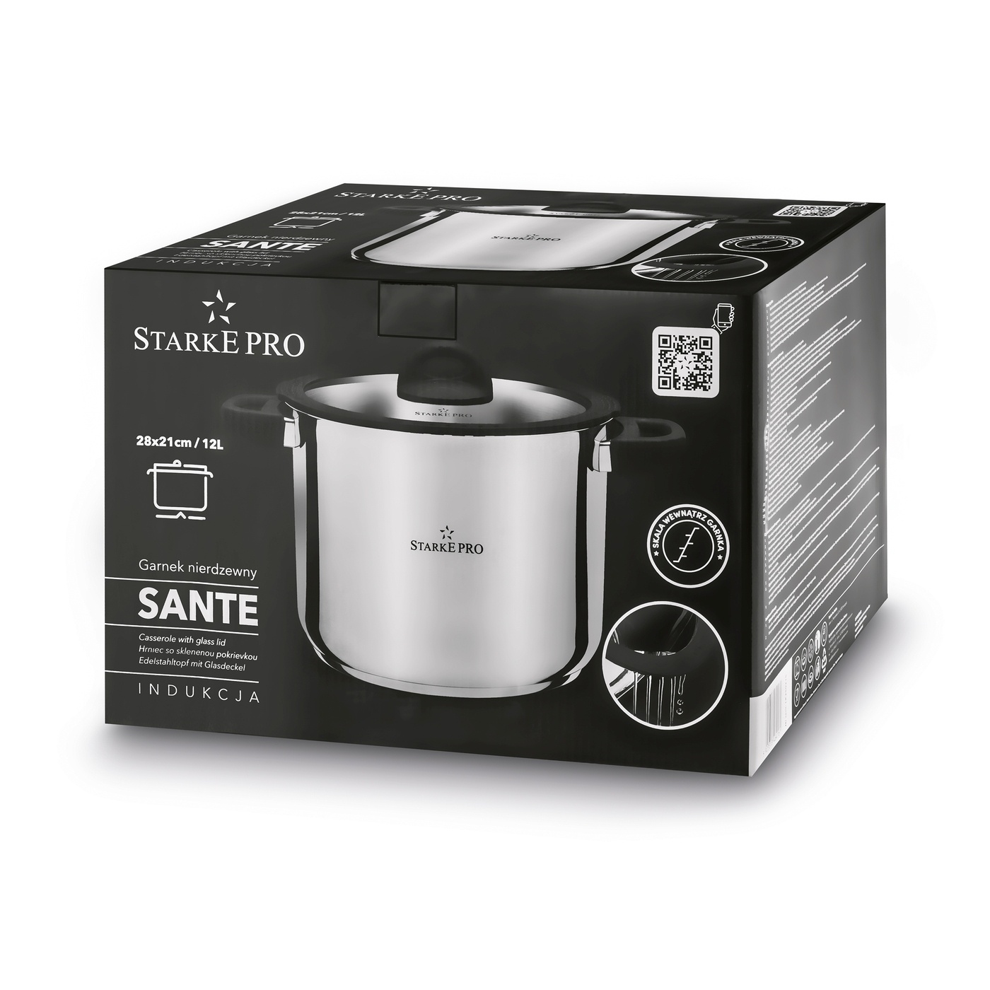Garnek Starke Pro Sante 12 l łączy w sobie trwałość, funkcjonalność oraz klasyczny design pasujący do każdej kuchni. To praktyczne naczynie, które sprawdzi się zarówno podczas codziennego gotowania, jak i przygotowywania większych posiłków dla rodziny lub gości.