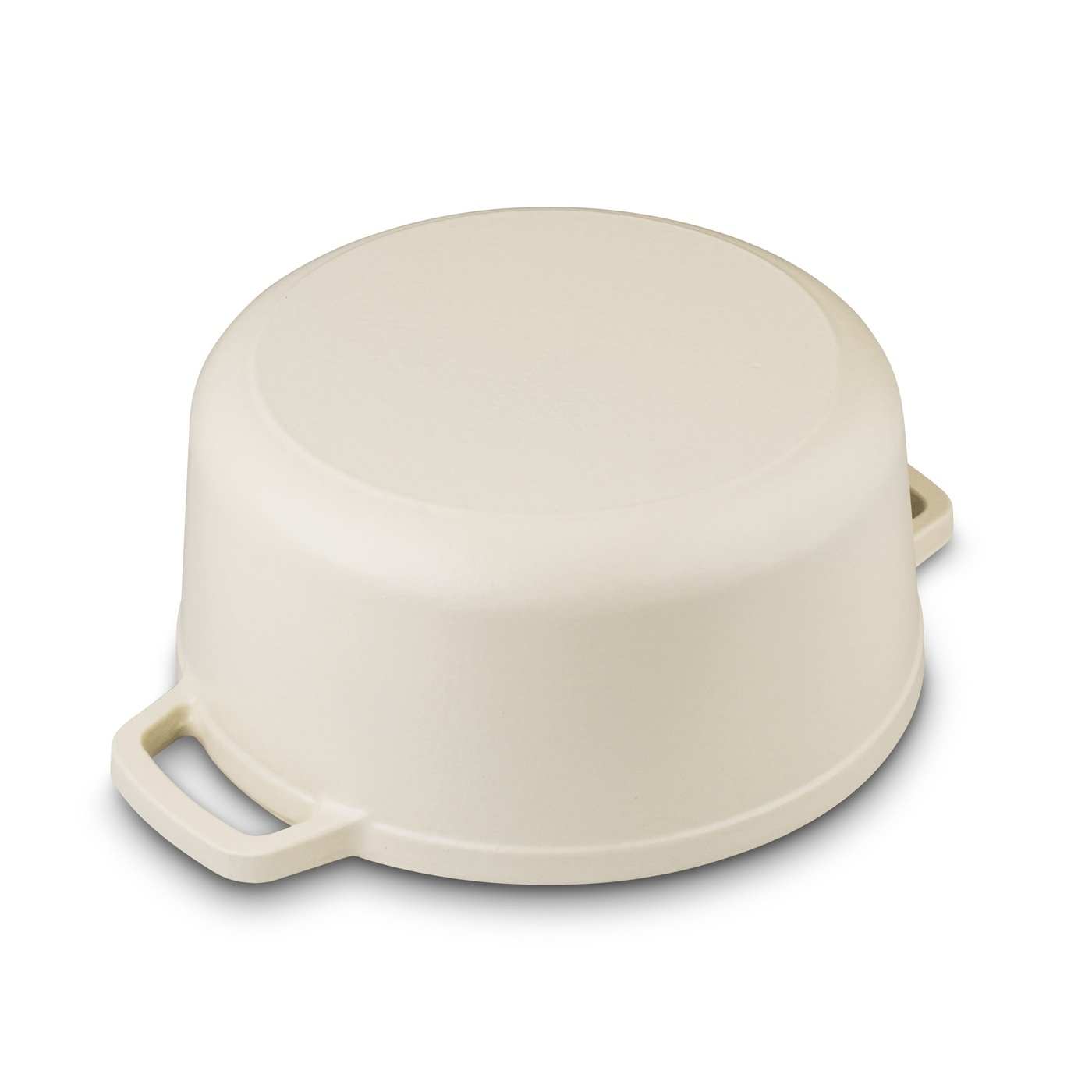 Klasyczny projekt kremowej gęsiarki żeliwnej dobrze wpisuje się w elegancki oraz swojski styl wyposażenia kuchni. Dzięki uniwersalnemu zastosowaniu możesz gotować w niej na co dzień. Rozmiar naczynia ułatwi natomiast jego przechowywanie.