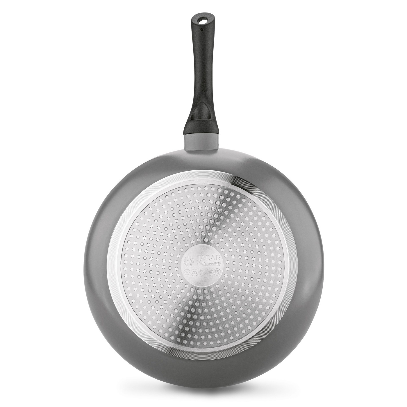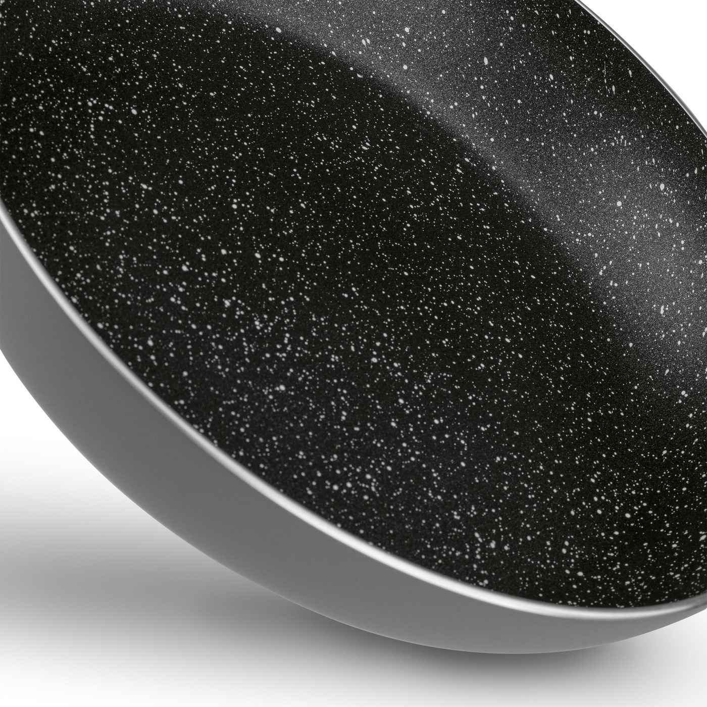 - korpus aluminiowy pokryty powłoką non stick - powłoka czarna nakrapiana - PFOA free - wykończenie zewnętrzne w kolorze szarym |