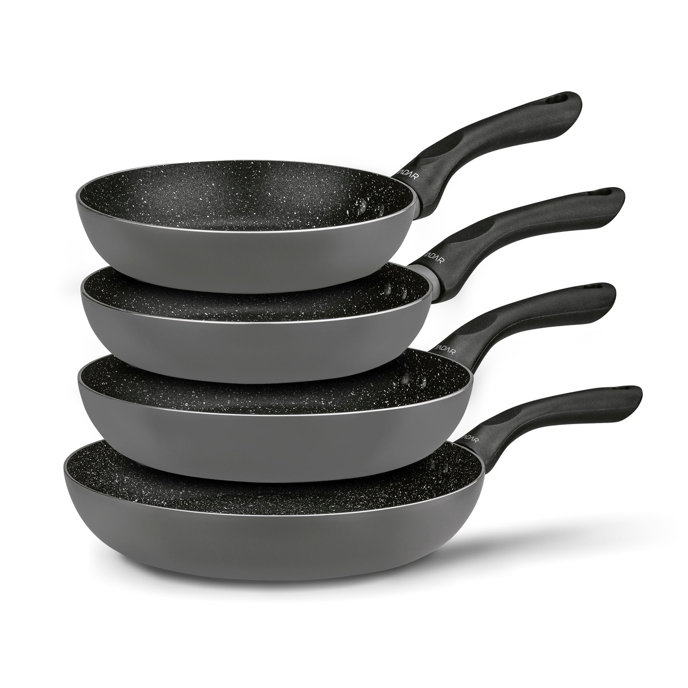 Komplet patelni Tadar Amarantina Grey to praktyczne rozwiązanie dla każdej kuchni. W zestawie znajdują się cztery patelnie o średnicach 18, 20, 24 oraz 28 cm, dzięki czemu bez problemu dopasujesz odpowiedni rozmiar do przygotowywanej potrawy. To idealny wybór zarówno do szybkich śniadań, jak i większych dań dla całej rodziny.