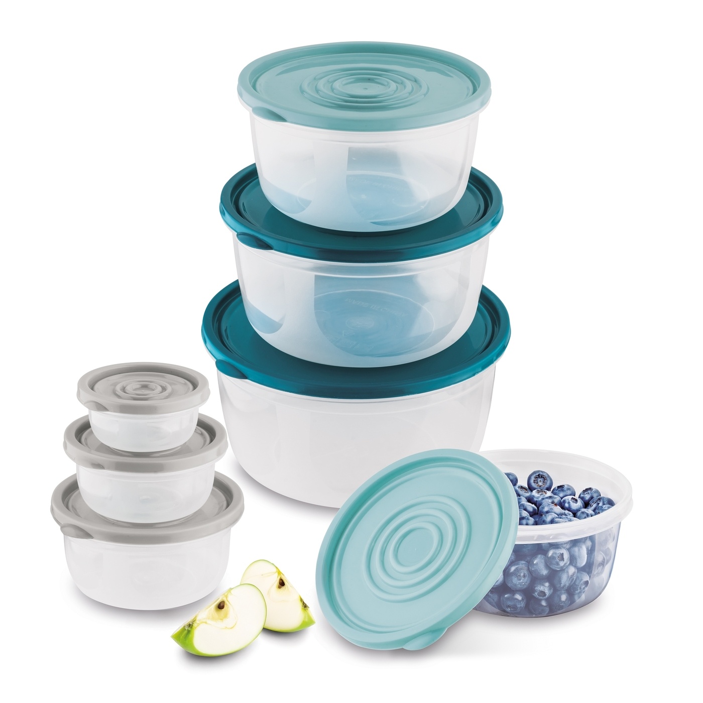 Odnalezieniu właściwego pojemnika sprzyja ich częściowo przezroczysta konstrukcja. Dołączone pokrywki zapewniają szczelne zamknięcie. Całość wykonano z trwałego plastiku, który nadaje się do mycia w zmywarce oraz podgrzewania w kuchence mikrofalowej.