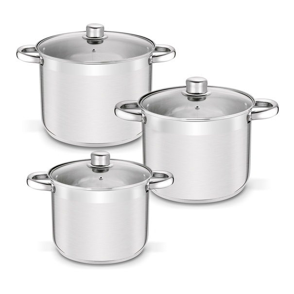 Każdy garnek wykonano z wysokiej jakości stali nierdzewnej, która nie wpływa na smak ani zapach potraw i jest bezpieczna w kontakcie z żywnością. Materiał ten cechuje się również dobrą odpornością na wysoką temperaturę, dzięki czemu garnki sprawdzają się podczas długiego gotowania.