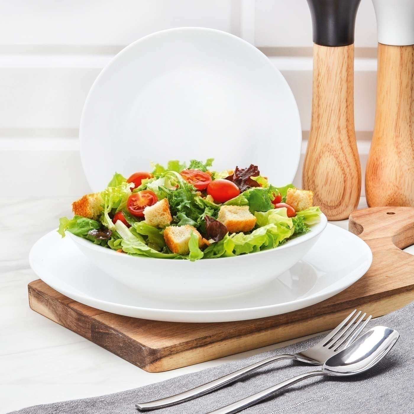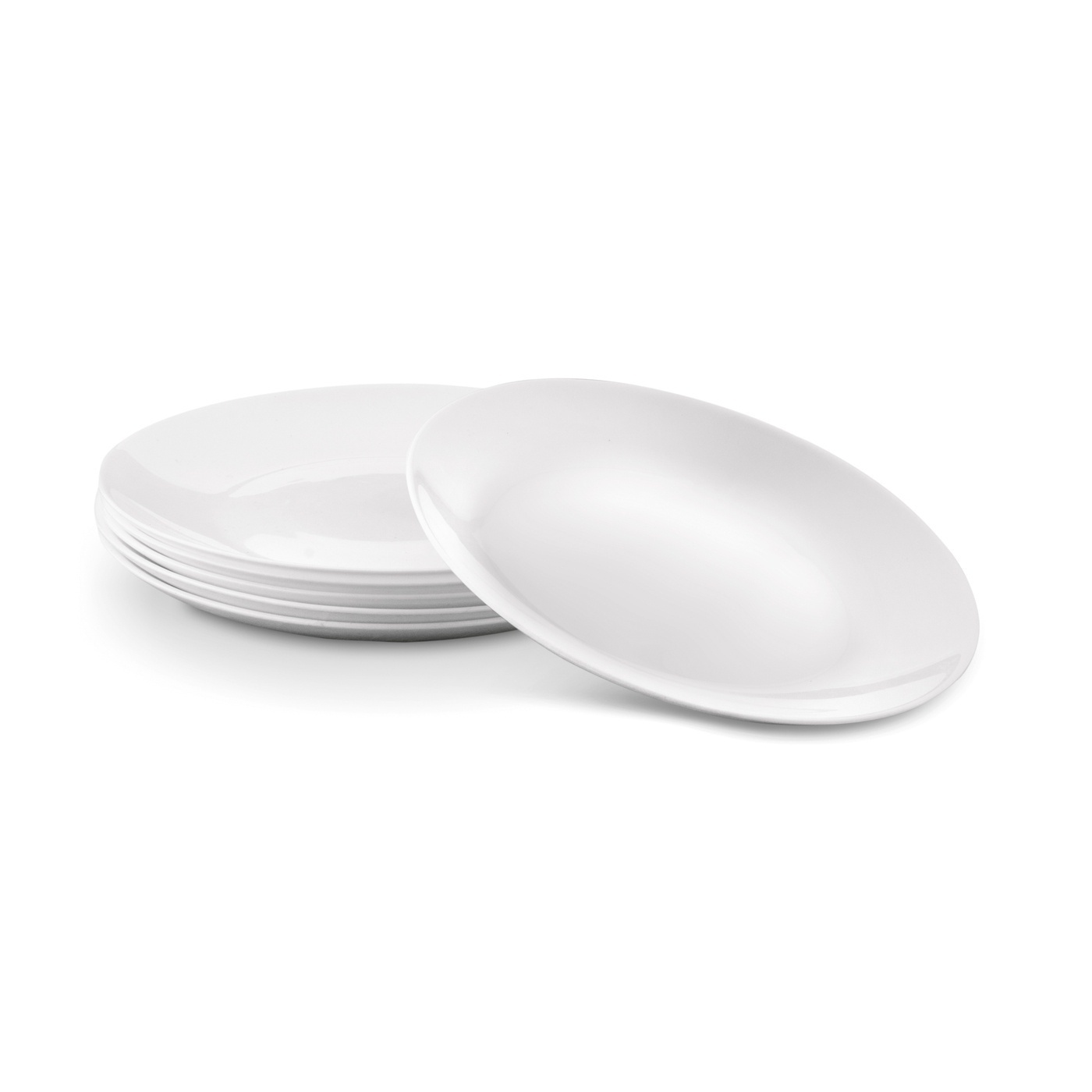 Talerze wykonane zostały z białego szkła opalowego, które jest hartowane, a tym samym odporne na uszkodzenia mechaniczne. Błyszcząca powierzchnia nadaje im elegancji i sprawia, że świetnie komponują się z każdą aranżacją stołu – zarówno klasyczną, jak i nowoczesną.