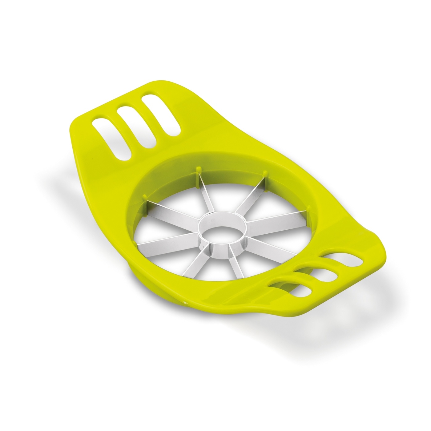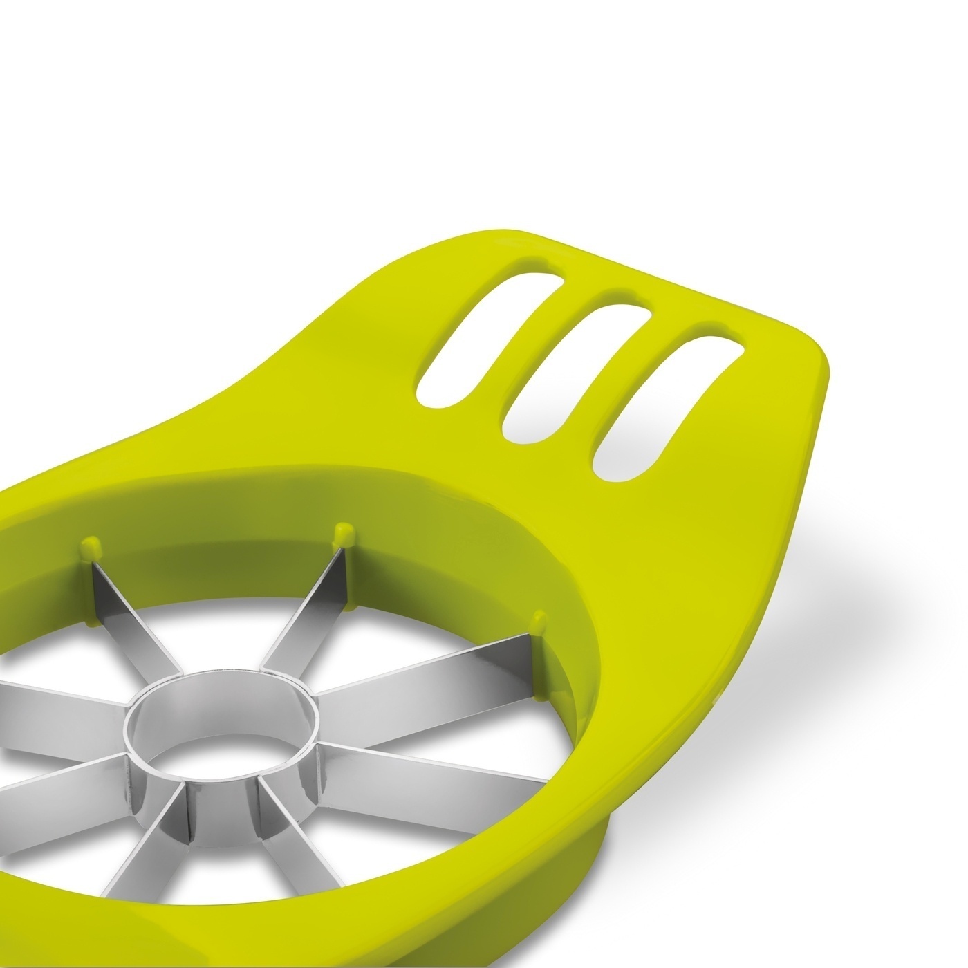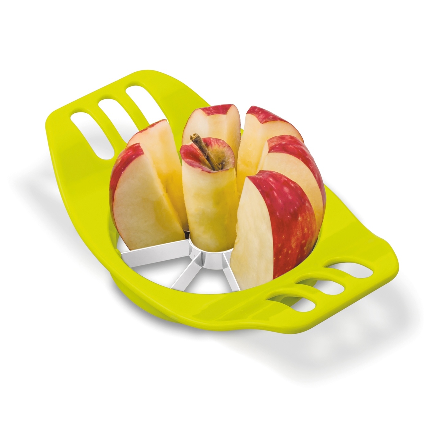 Krajalnica do jabłek Tadar Oval ma idealnie skonstruowane ostrza, które wykrawają komory nasienne z ogonkiem, oczyszczają i dzielą jabłko na równe części.
