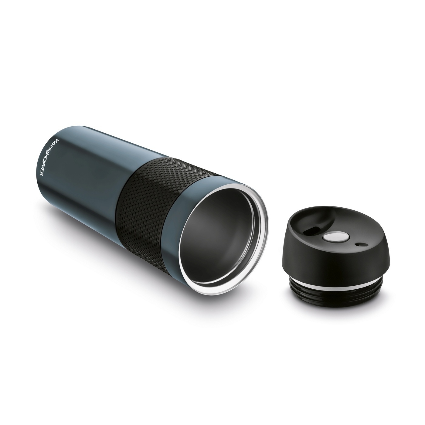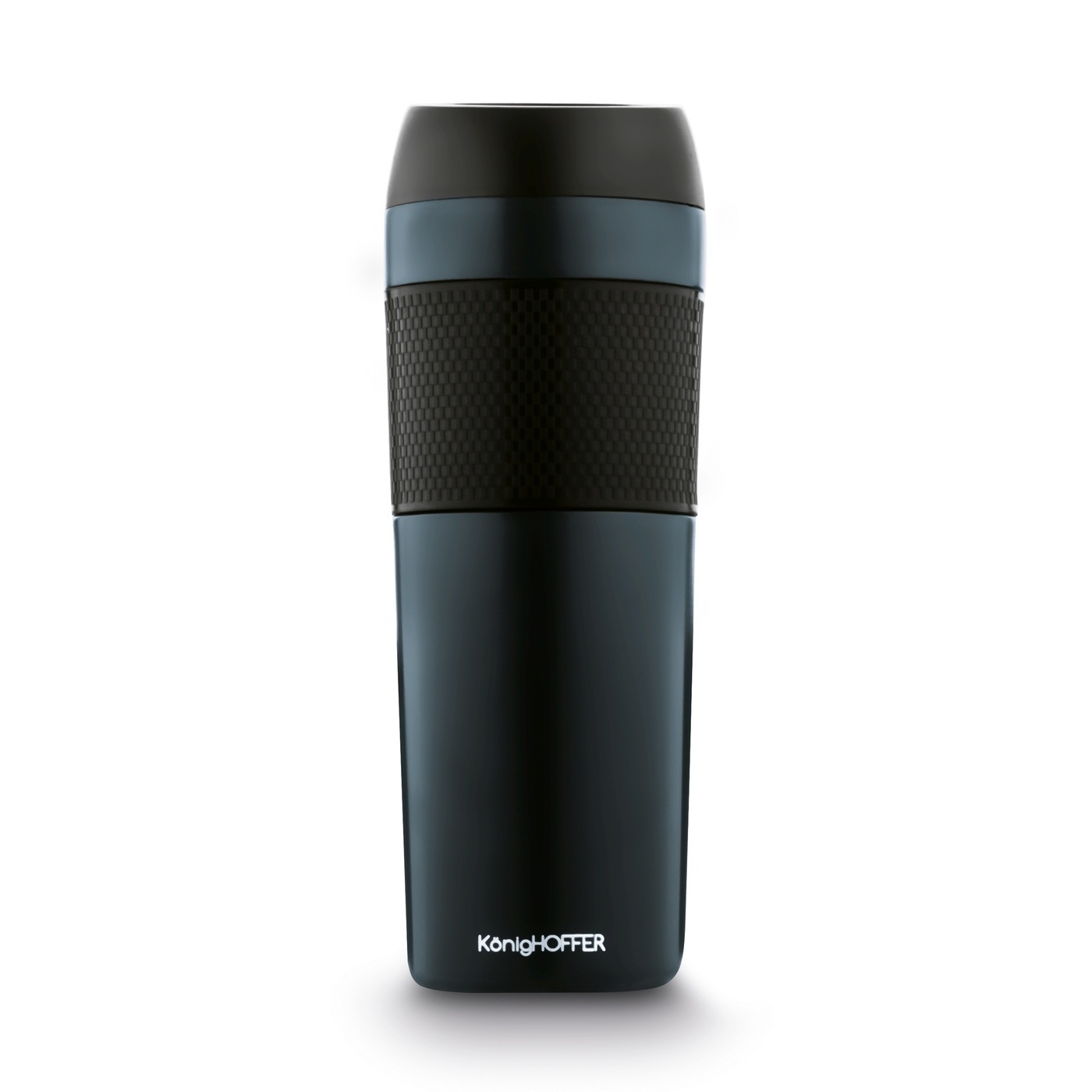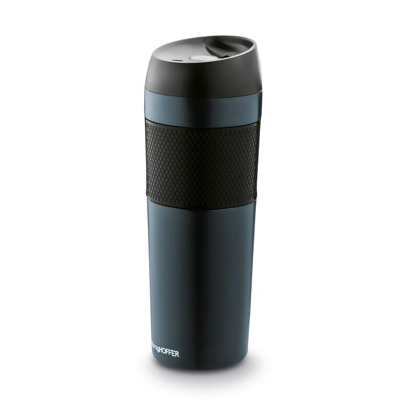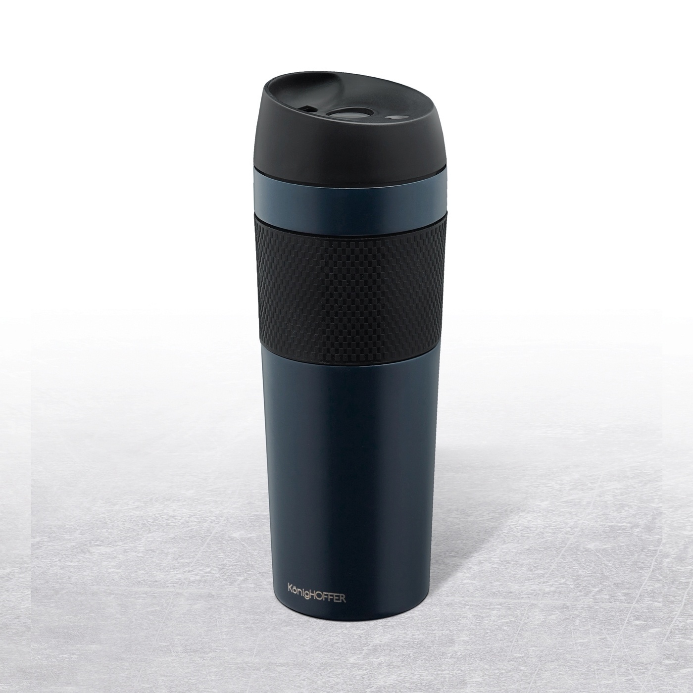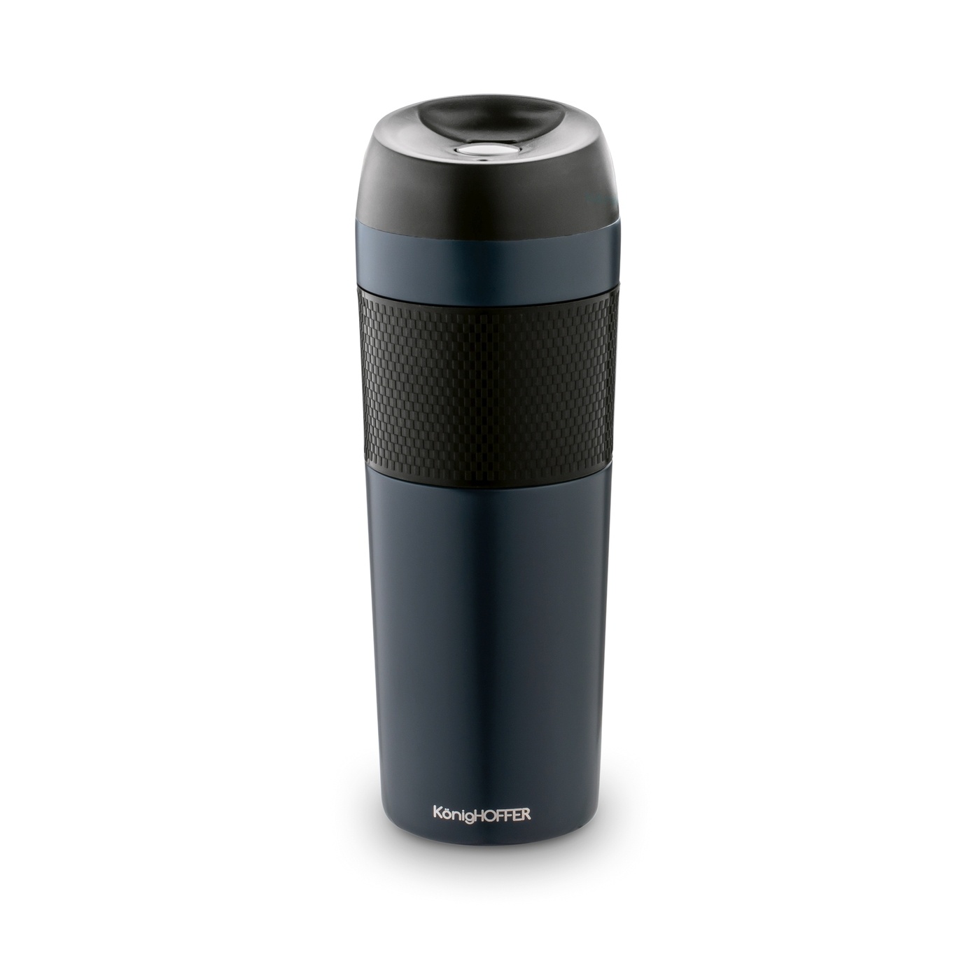 Kubek z podwójnymi ściankami i termoizolacją próżniową Konighoffer Nevis ma pojemność 450 ml. Nada się więc na małe i duże podróże, a także na kawę do pracy. Model jest szczelny, a by się napić, wystarczy użyć prostego mechanizmu. Zamknięcie ma kształt dający komfort gaszenia pragnienia.