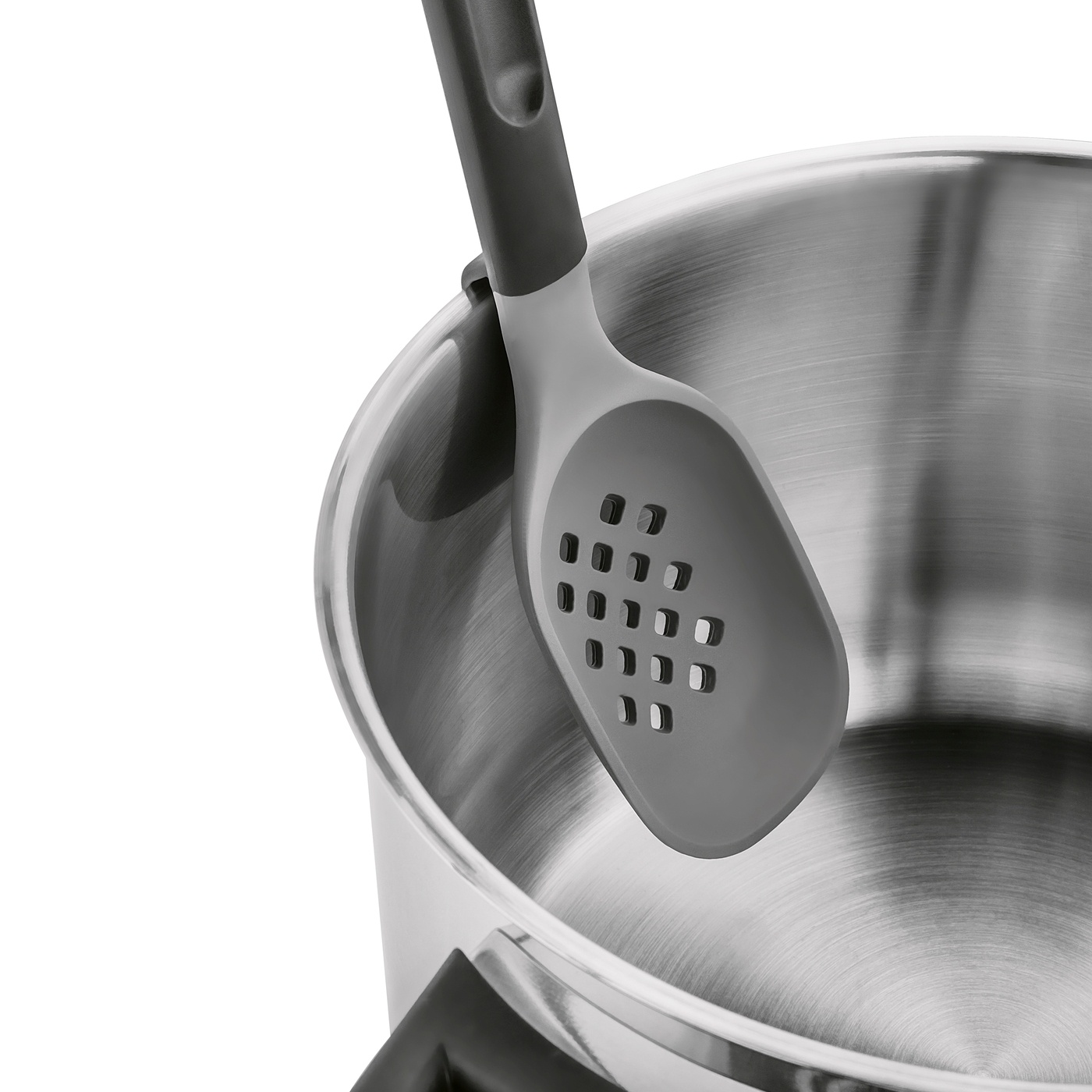 Dzięki specjalnej konstrukcji z otworami możesz łatwo oddzielić składniki od płynu, np. podczas wyjmowania makaronu, warzyw lub pierogów. To znacząco przyspiesza pracę w kuchni i zwiększa wygodę przygotowywania posiłków.