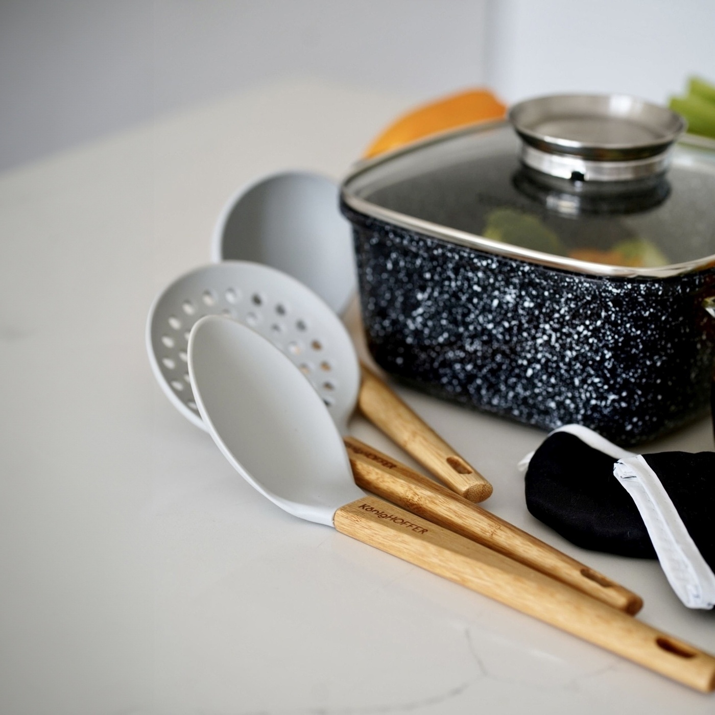- rączka wykonana z drewna bambusowego - otwór do zawieszenia - łyżka z silikonu - użytkowanie w zakresie temperatur: od - 20 st. do + 220 st. |