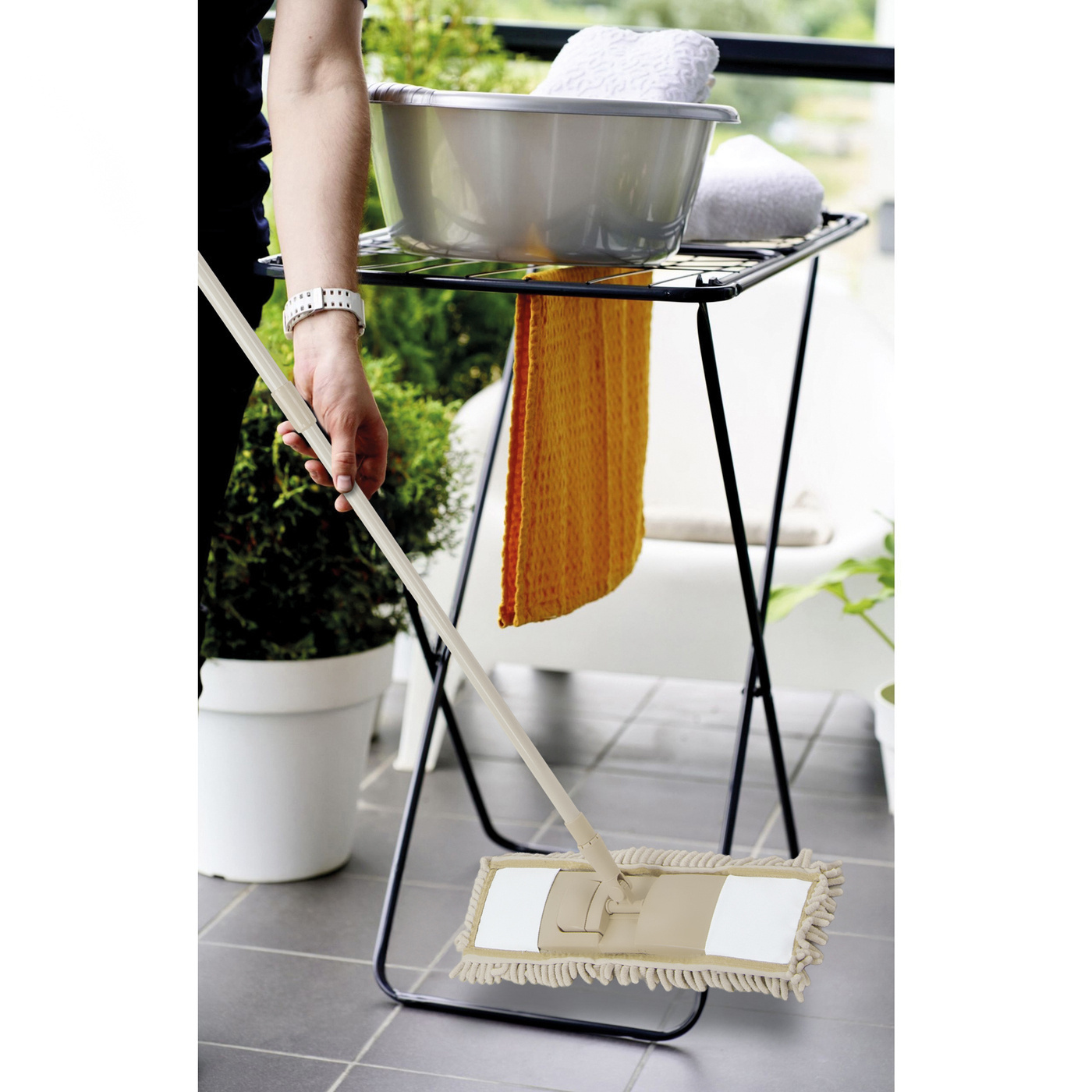 Dzięki zakończeniu z mikrofibry mop jest bardzo chłonny. Jednocześnie możesz używać go na każdym rodzaju podłóg, gdyż jest delikatny - nawet w przypadku drewnianego parkietu.