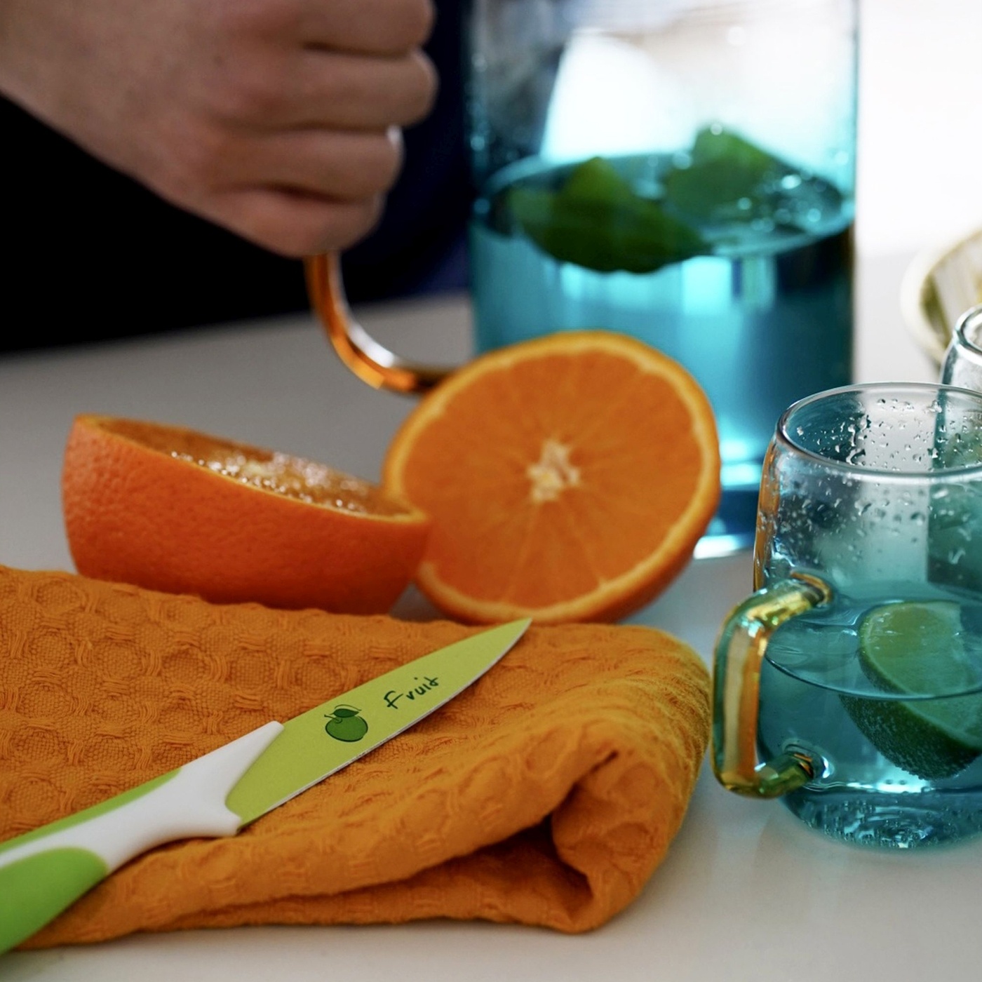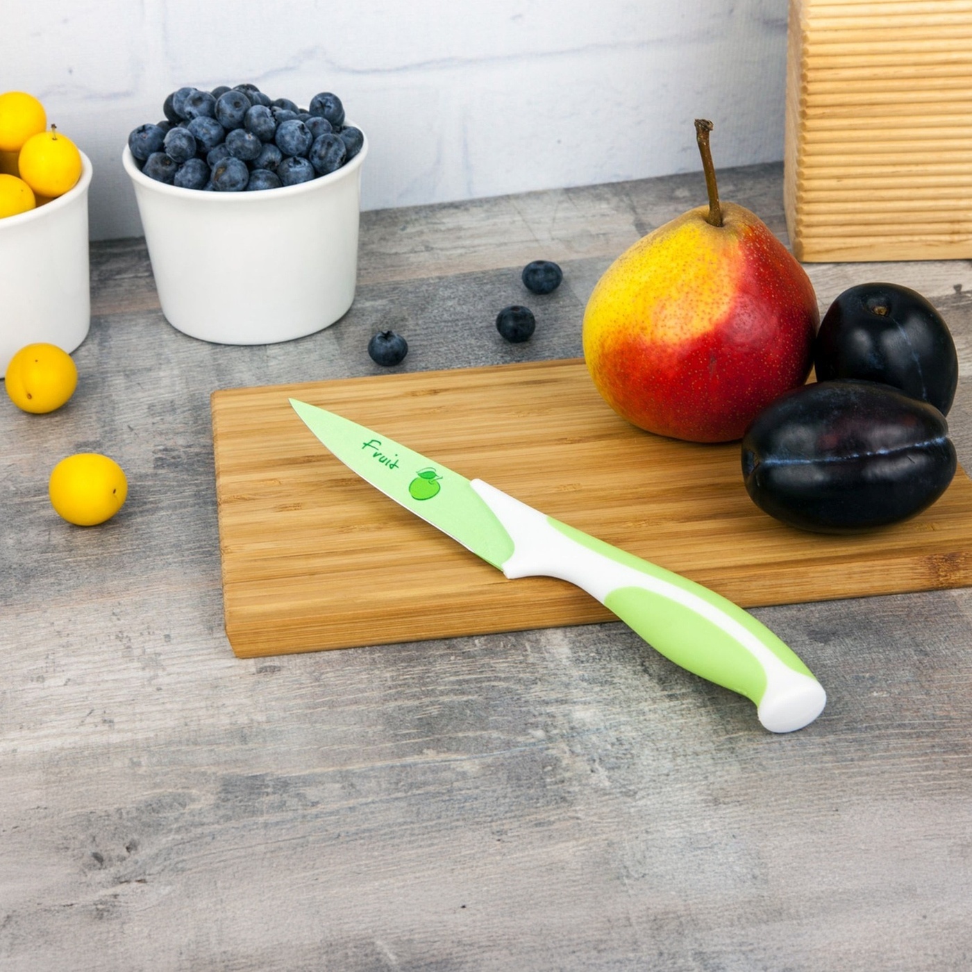 Nóż do warzyw i owoców Tadar Kolorino 9 cm ma powłokę non-stick na ostrzu. Dzięki niej krojone produkty nie przyklejają się. To oznacza wygodne krojenie i obieranie warzyw oraz owoców.