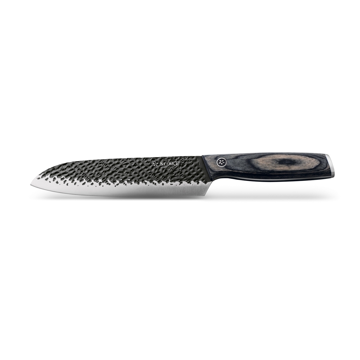 | Pozostałe informacje | - ostrze z wysokiej jakości stali nierdzewnej X50CrMoV15 - ekstremalna ostrość i ponadprzeciętna twardość ostrza - wysoka odporność stali na korozję - nierdzewny stop nazywany stalą niemiecką - efekt młotkowania na ostrzu - rączka wykonana z egzotycznego drewna Pakka - długość ostrza: 17,5 cm - kolor rękojeści może odbiegać od prezentowanego na zdjęciu, co wynika z naturalnych różnic w strukturze i wybarwieniu drewna, charakterystycznych dla materiałów organicznych |