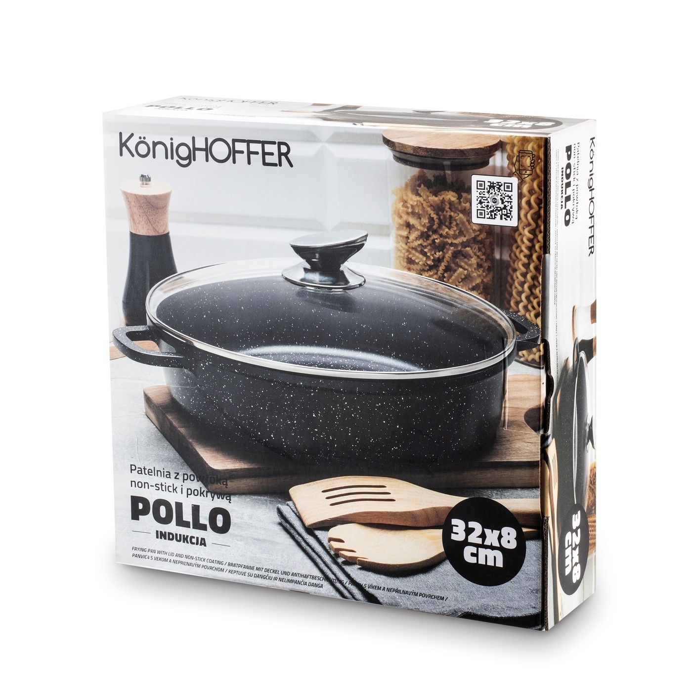 Wspólnie z dnem indukcyjnym sprawia, że gotowanie i smażenie jest szybsze oraz energooszczędne. Przy tak atrakcyjnej pojemności to spory atut. Podobny efekt osiągniesz na każdym typie kuchenki, bo płytki garnek Pollo działa równie dobrze na gazie, jak na płycie indukcyjnej, elektrycznej lub ceramicznej.