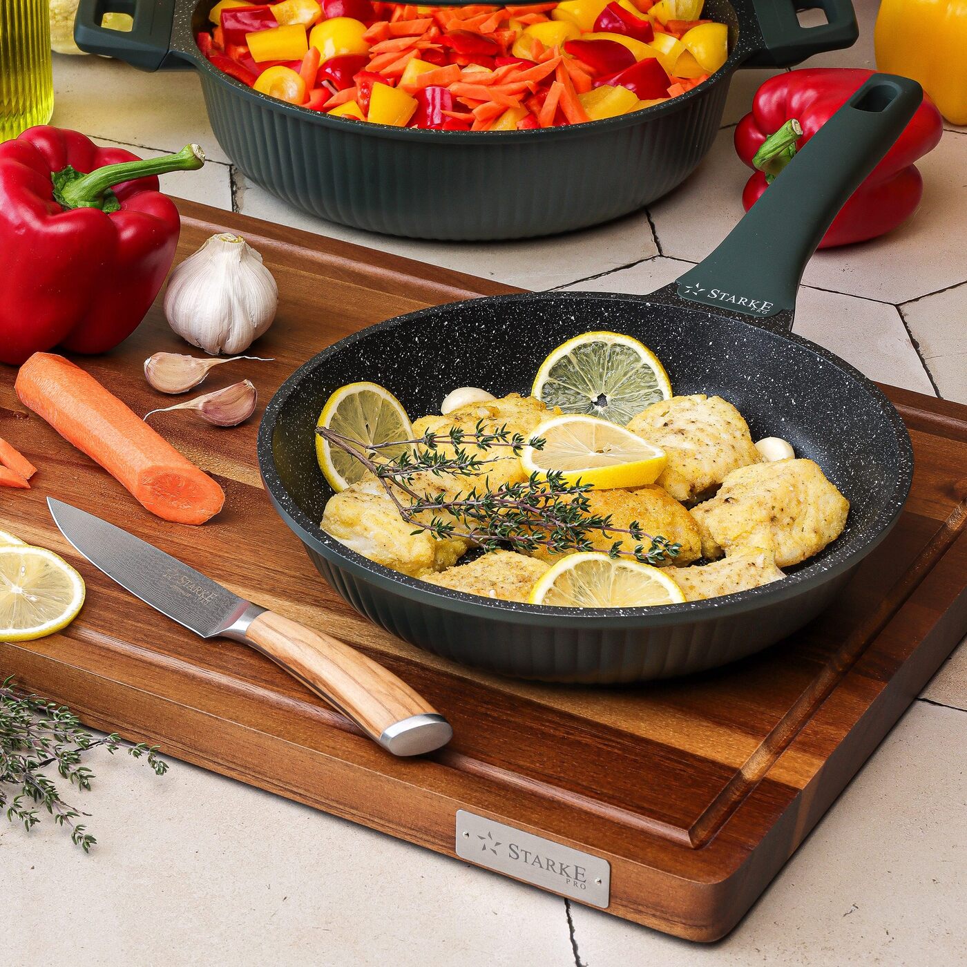Możliwość świetnej ochrony składników przed przywieraniem i przypaleniem uzyskano bez dodatku PFOA. Na patelni Starke Pro Eridan 28 cm możesz smażyć na małej ilości tłuszczu. Zrobione w ten sposób dania będą lekkostrawne, a więc zdrowsze dla twoich bliskich. Właściwości non-stick ułatwią ci również pielęgnację naczynia - bez wysiłku umyjesz ją nawet z zaschniętych resztek.