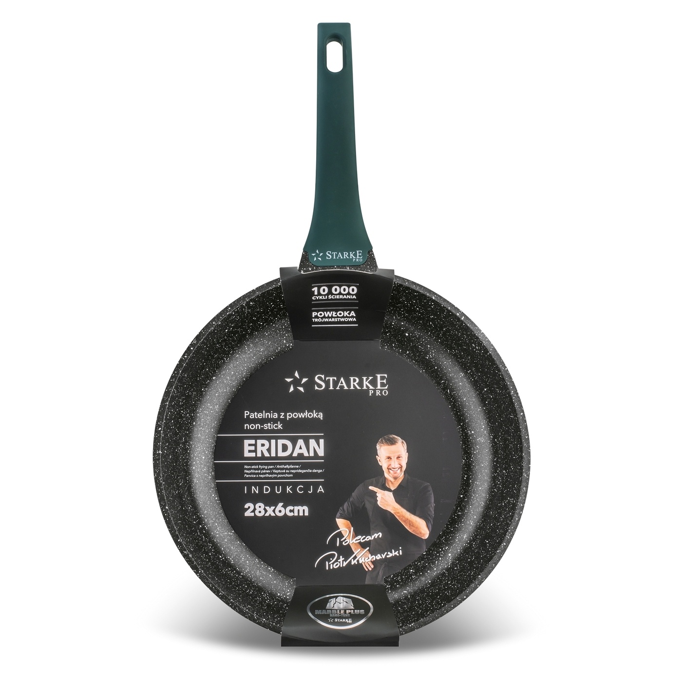Możliwości patelni Eridan przetestował sam Piotr Kucharski. W sprawdzianach, jakim poddał ten model, zweryfikował zarówno jakość powłoki nieprzywierającej, jak i funkcjonalność oraz trwałość budowy korpusu i uchwytu. Gwarantuje ci to, że na lata zaopatrzysz swoją kuchnię w patelnię aluminiową, na której zrobisz niejeden obiad, śniadanie lub kolację. Na co dzień - jako profesjonalny szef kuchni, Piotr Kucharski poleca ją do domowego użytku!