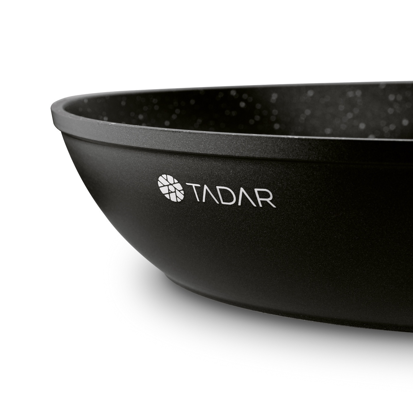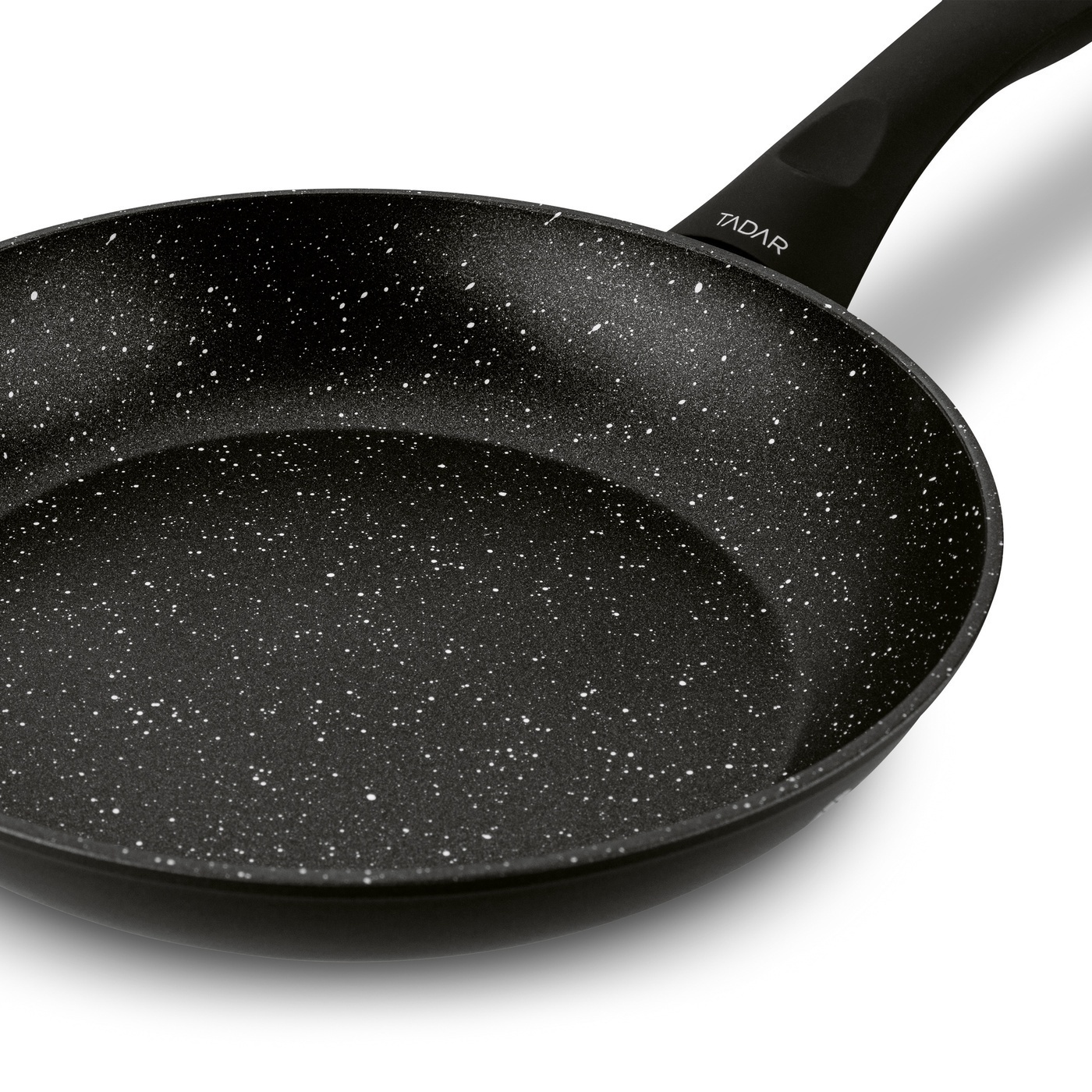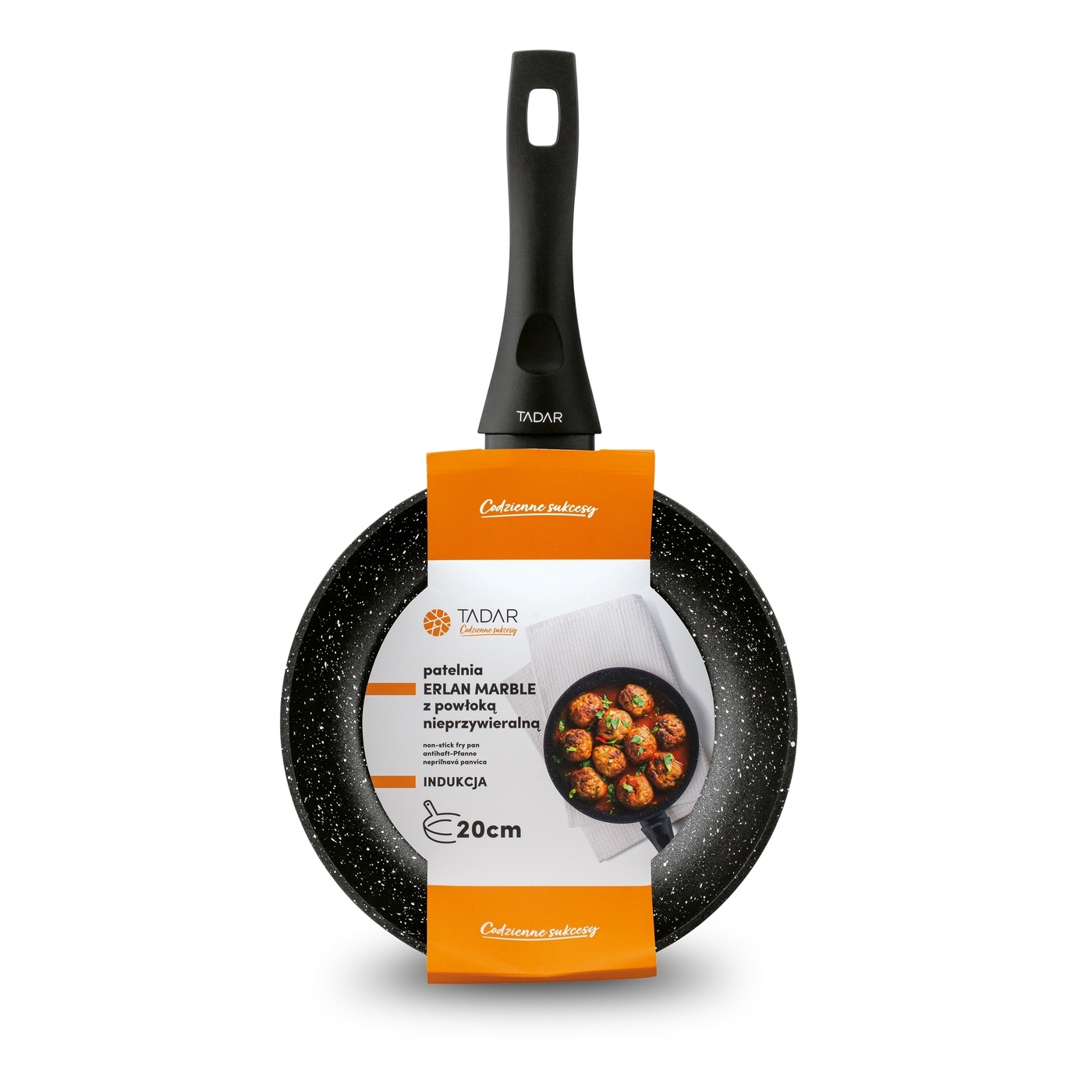 Taka patelnia przyda się w domowej kuchni! Jej powłoka zapobiega przywieraniu jedzenia. Struktura powierzchni smażenia non-stick typu Marble sprawia, że wytrzyma wiele cykli ścierania. Możesz na niej robić potrawy, używając mniej tłuszczu. Łatwiej też zadbasz o jej dokładną pielęgnację i ochronisz dania przed przypadkowym przypaleniem.