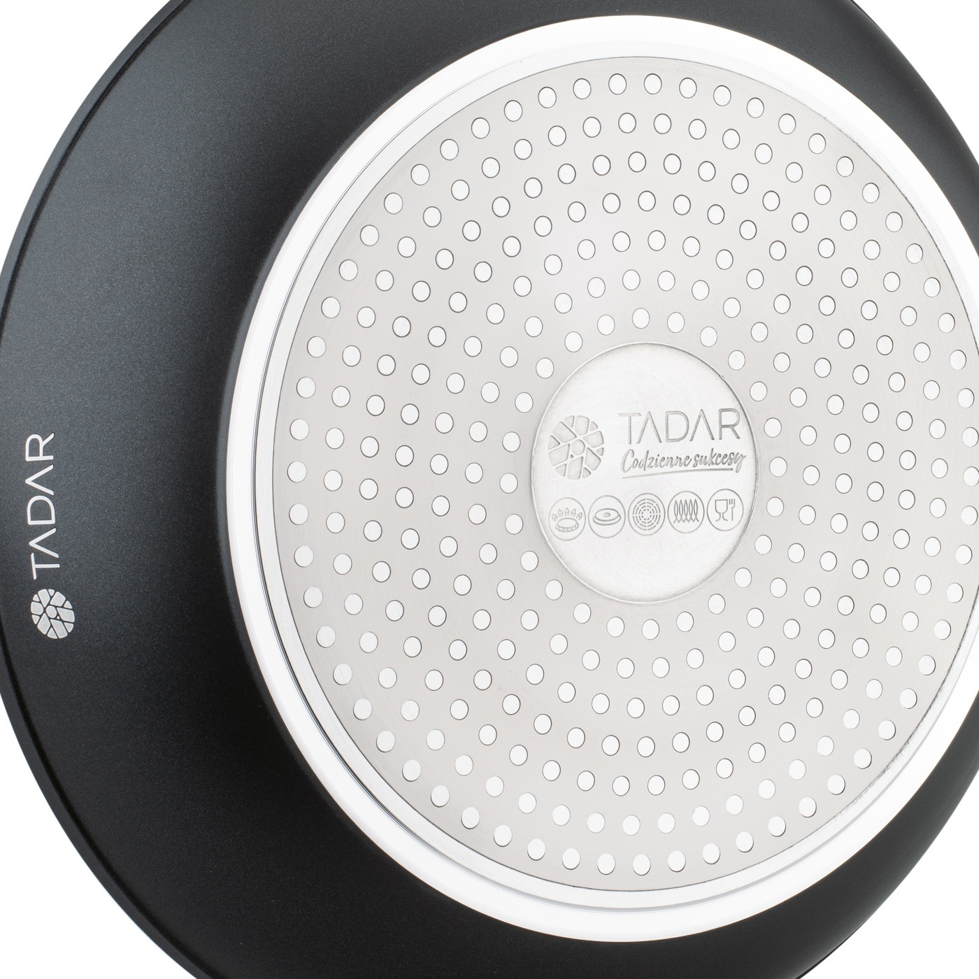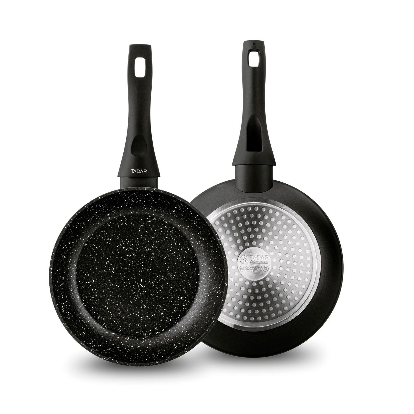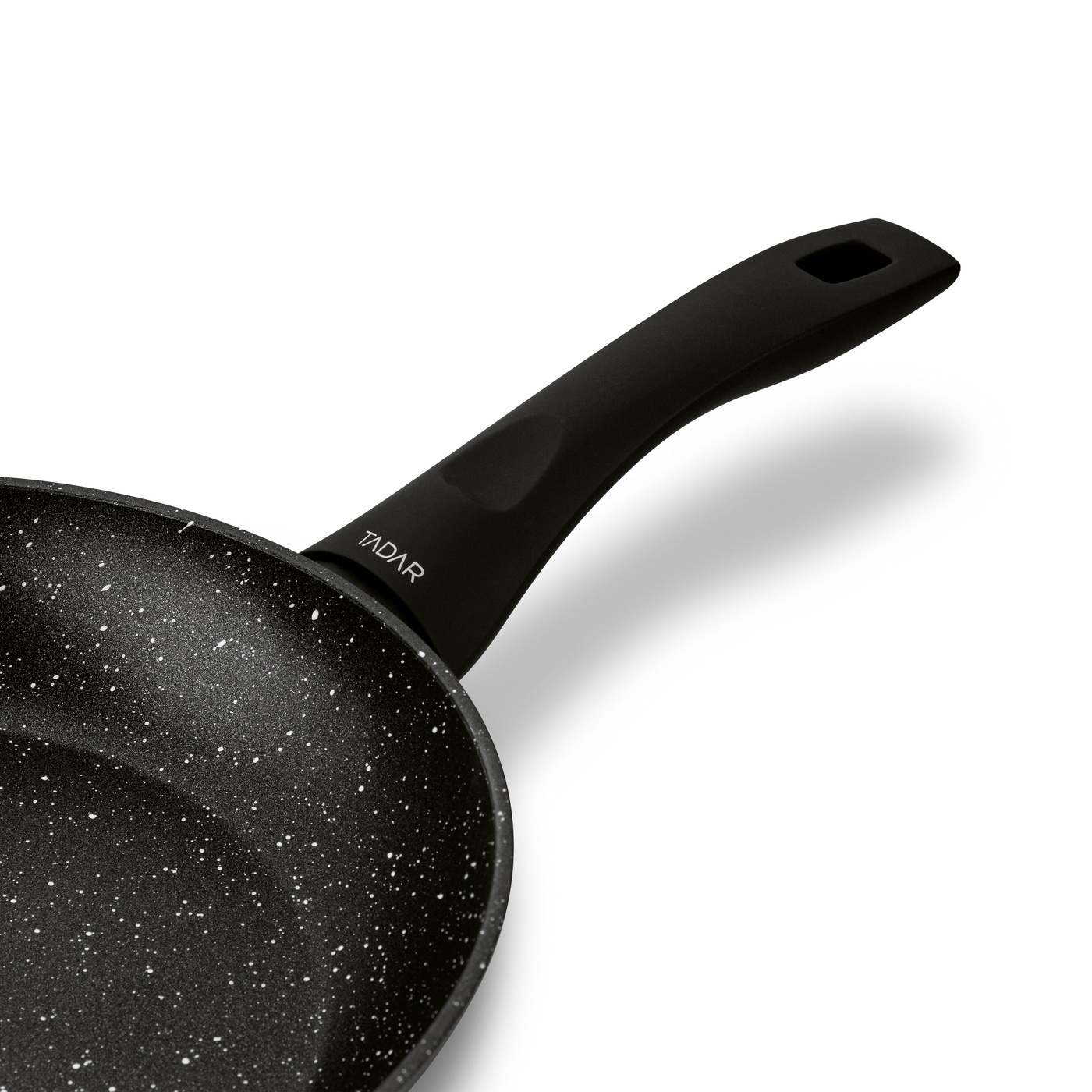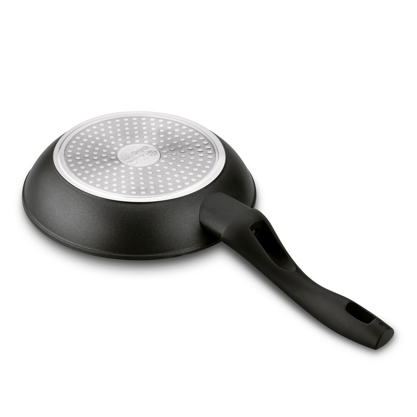 - patelnia aluminiowa z powłoką non stick - wykończenie zewnętrzne w kolorze czarnym, matowe |