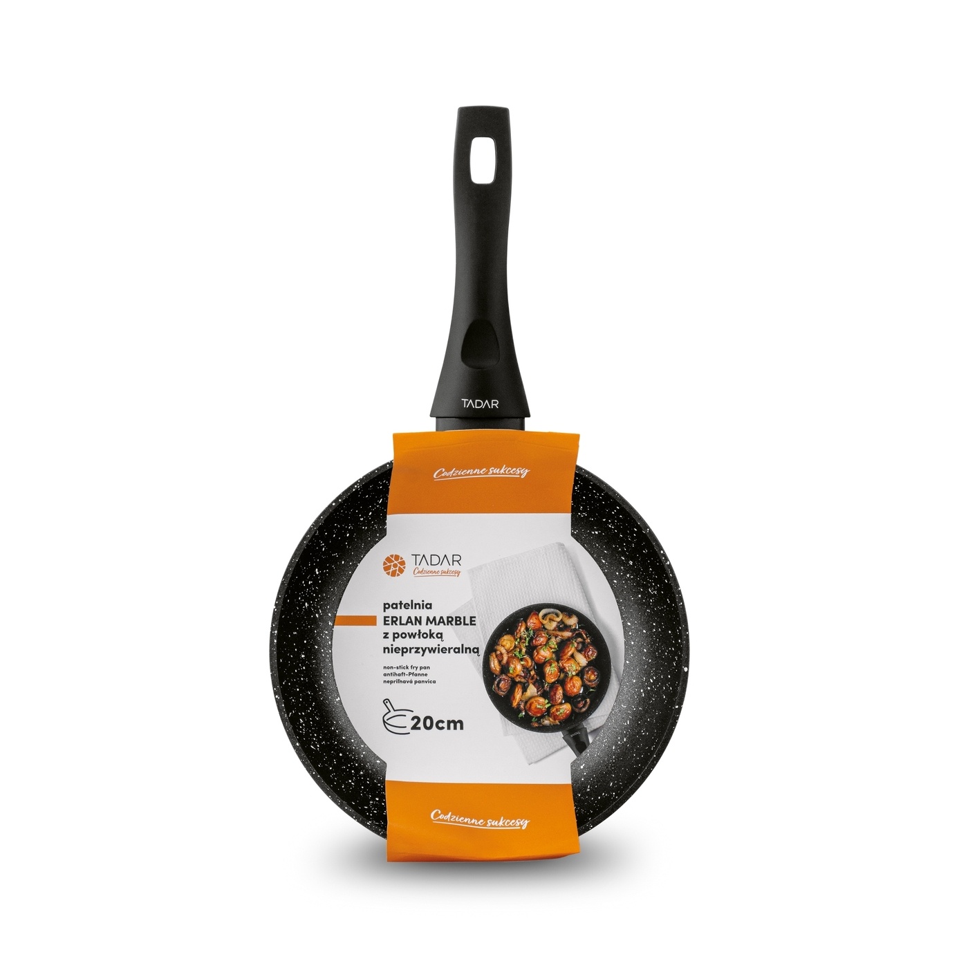 Taka patelnia przyda się w domowej kuchni! Jej powłoka zapobiega przywieraniu jedzenia. Struktura powierzchni smażenia non-stick typu Marble sprawia, że wytrzyma wiele cykli ścierania. Możesz na niej robić potrawy, używając mniej tłuszczu. Łatwiej też zadbasz o jej dokładną pielęgnację i ochronisz dania przed przypadkowym przypaleniem.