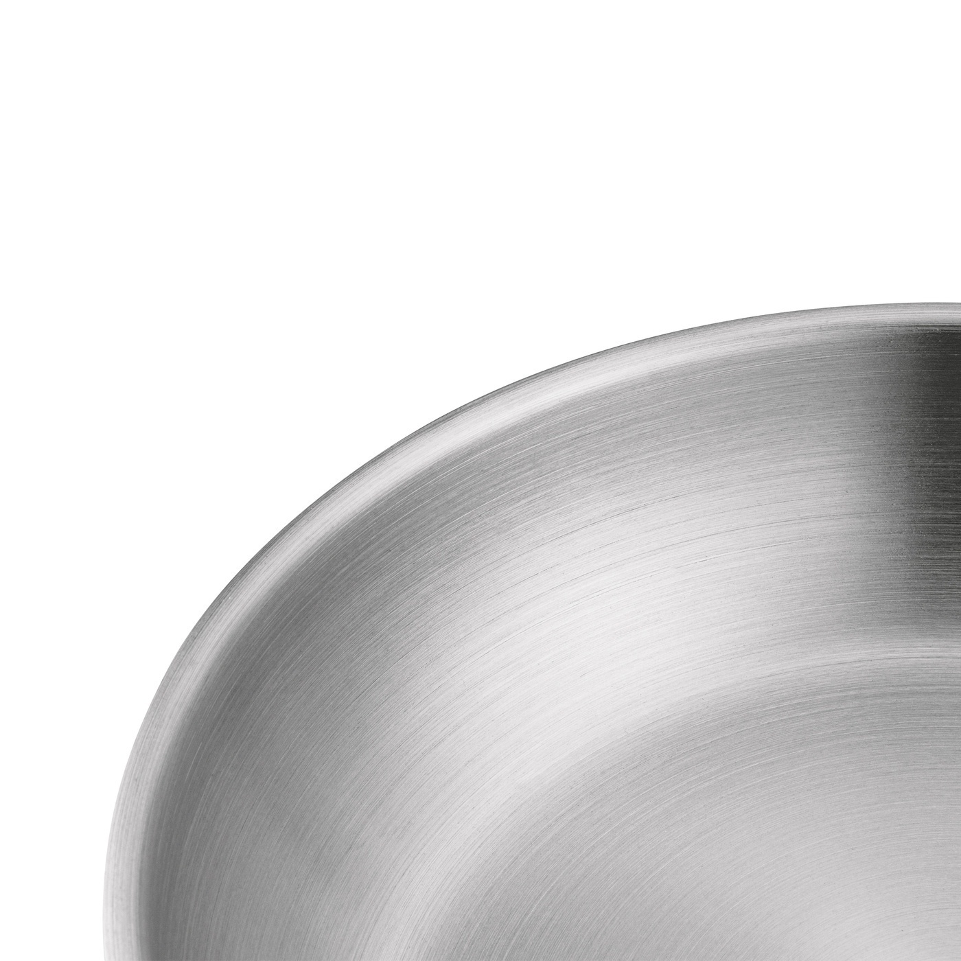 Wielowarstwowe dno 5 mm zadba o odpowiednią dystrybucję ciepła (równomierną!) i pozwoli używać modelu na każdym rodzaju kuchenki. Wykonano je w technologii Impact Bonding (łączenia uderzeniowego w wysokiej temperaturze). Oznacza to, że produkt oferuje unikalny poziom zarządzania absorbowaną temperaturą.