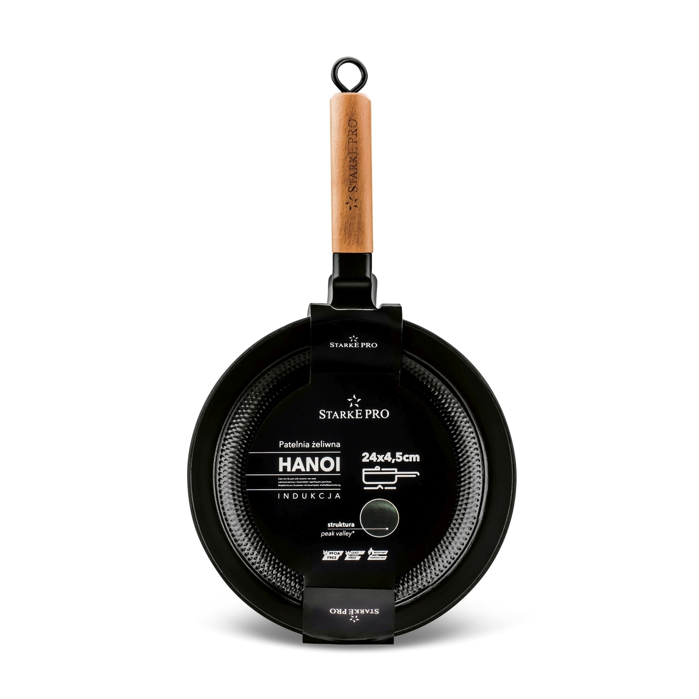 Potrawy stworzysz na kuchence indukcyjnej, gazowej, ceramicznej i elektrycznej. O równomierną dystrybucję ciepła na ciężkiej, żeliwnej patelni uniwersalnej Hanoi dba jej grube dno. To model, który jak żaden inny nadaje się do przepisów stir fry. Przenoszenie naczynia ułatwia rączka nitowana wykończona naturalnym drewnem bukowym. Produktu nie należy myć w zmywarce.