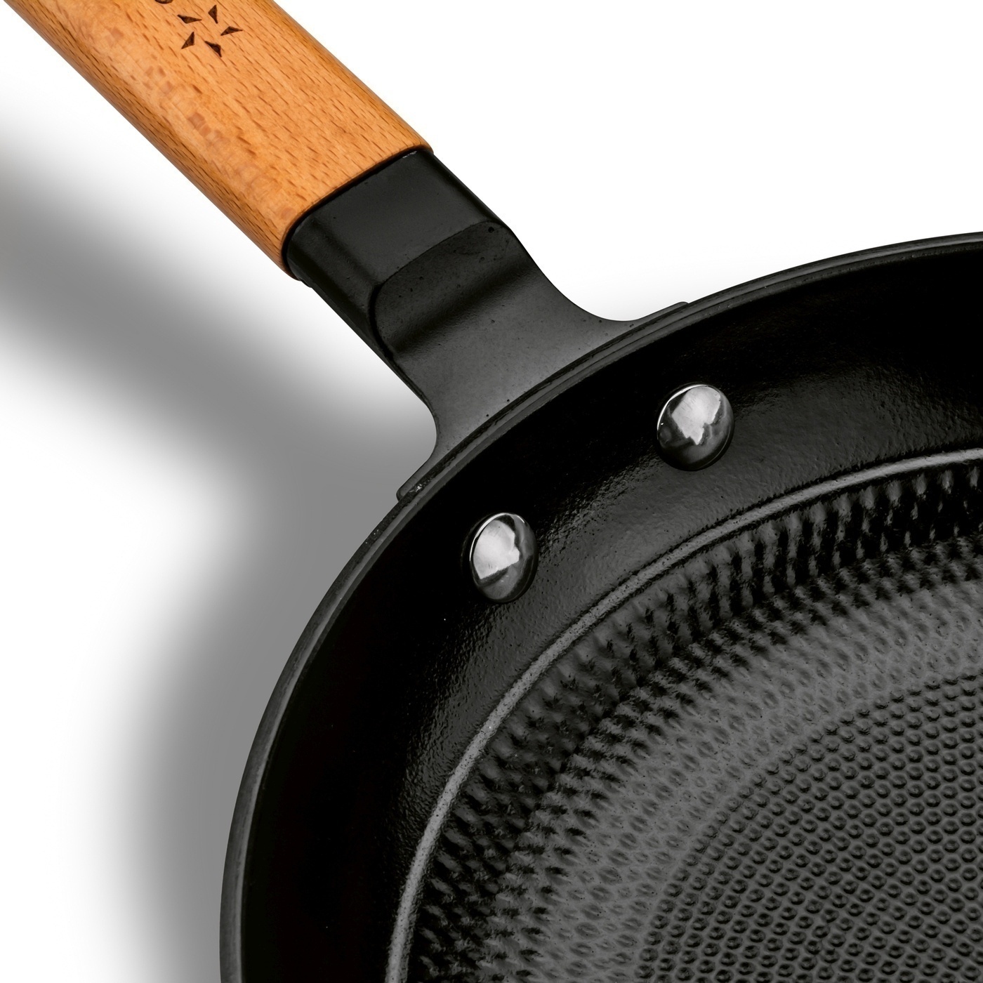 O równe rozłożenie tłuszczu podczas obróbki dba struktura peak valley - symetrycznie żłobiony układ nierówności wzmacniający efekt non-stick prezentowanej patelni żeliwnej. W ten sposób możesz używać mniej tłuszczu, a dania w mig staną się bardziej lekkostrawne. Co więcej, sama powłoka nieprzywierająca wolna jest od szkodliwych związków i może wytrzymać wiele cykli ścierania.