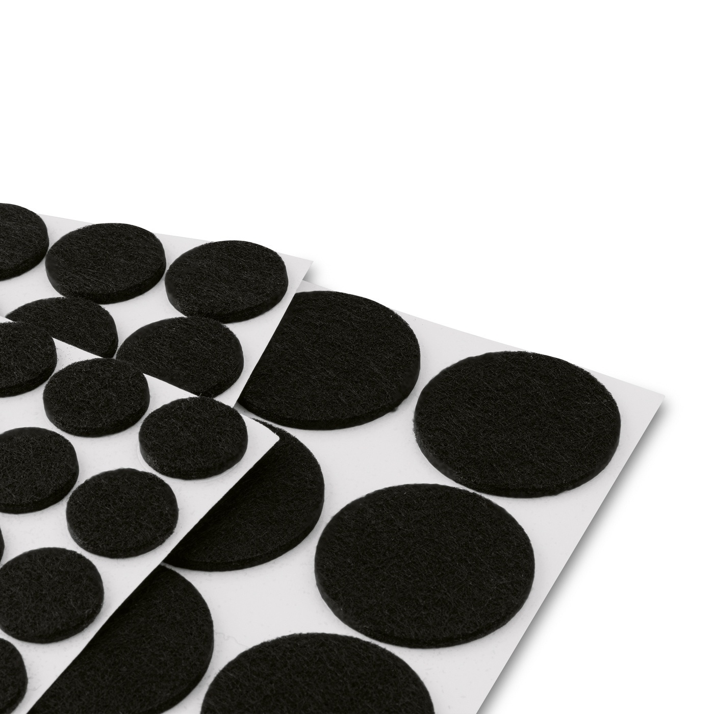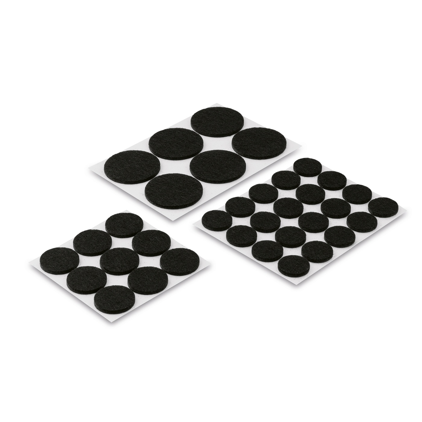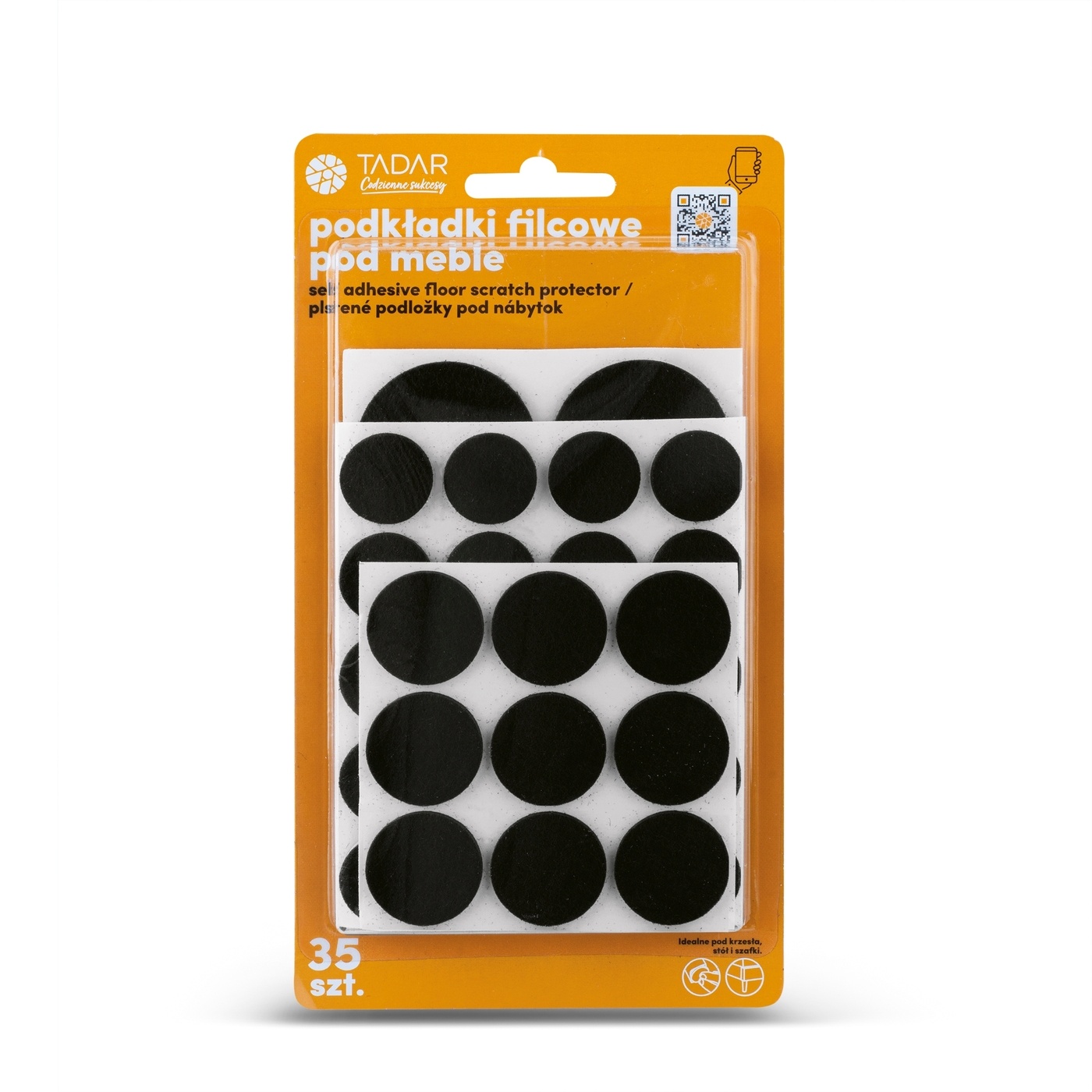 Zestaw zawiera 35 podkładki z filcu pod stoły, krzesła i szafki. Są one wyłącznie okrągłe (29 sztuk, średnica 2 cm, 9 sztuk, średnica 2,5 cm oraz 6 sztuk, średnica 4 cm).