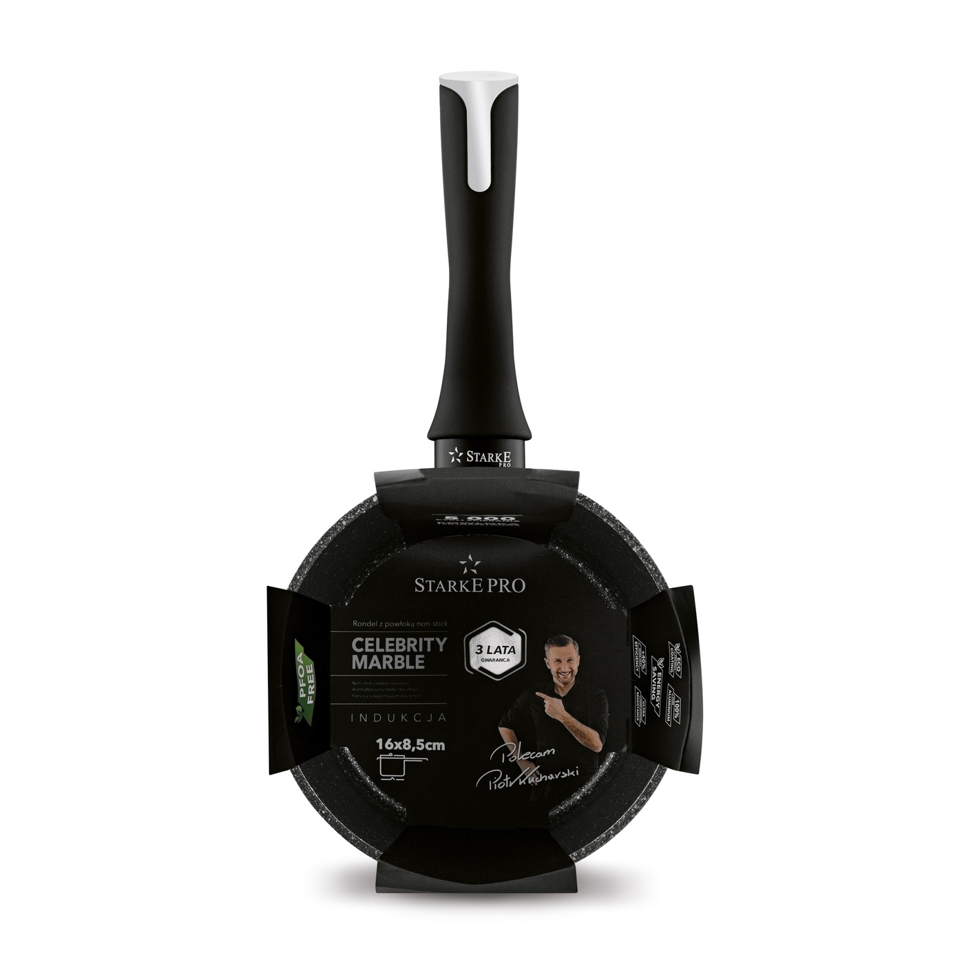 To produkt, który zasługuje na najwyższą ocenę, ponieważ nie tylko działa na każdej kuchence, w tym na indukcji, ale również poleca go zawodowy szef kuchni, Piotr Kucharski, ambasador marki Starke Pro. Marmurowa rondelek Celebrity otrzymał 5/6 gwiazdek w testach wytrzymałości. Model objęty jest również aż 3-letnią gwarancją producenta.
