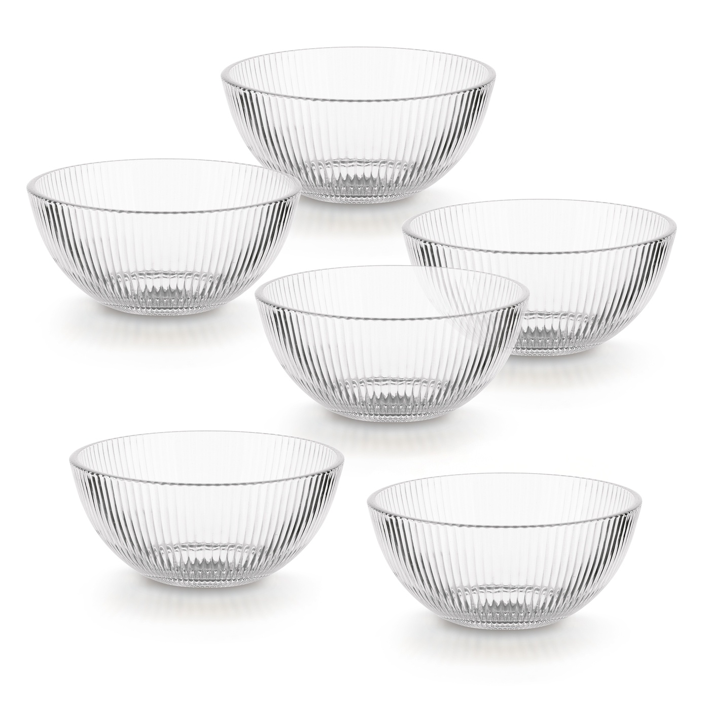 Komplet zawiera 6 szklanych salaterek. Każda ma pojemność 350 ml. Dzięki nim zachowasz spójność podczas komponowania serwisu obiadowego przy dowolnej okazji.