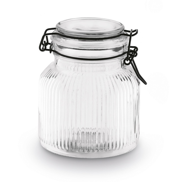 Żłobkowana faktura szkła poprawia komfort użytkowania, zapewniając pewny chwyt nawet przy napełnianiu czy podnoszeniu pojemnika. Słoik przeznaczony jest do użytku w zakresie temperatur od 0 do +70 st. C, co sprawia, że jest trwałym i funkcjonalnym elementem wyposażenia każdej kuchni.