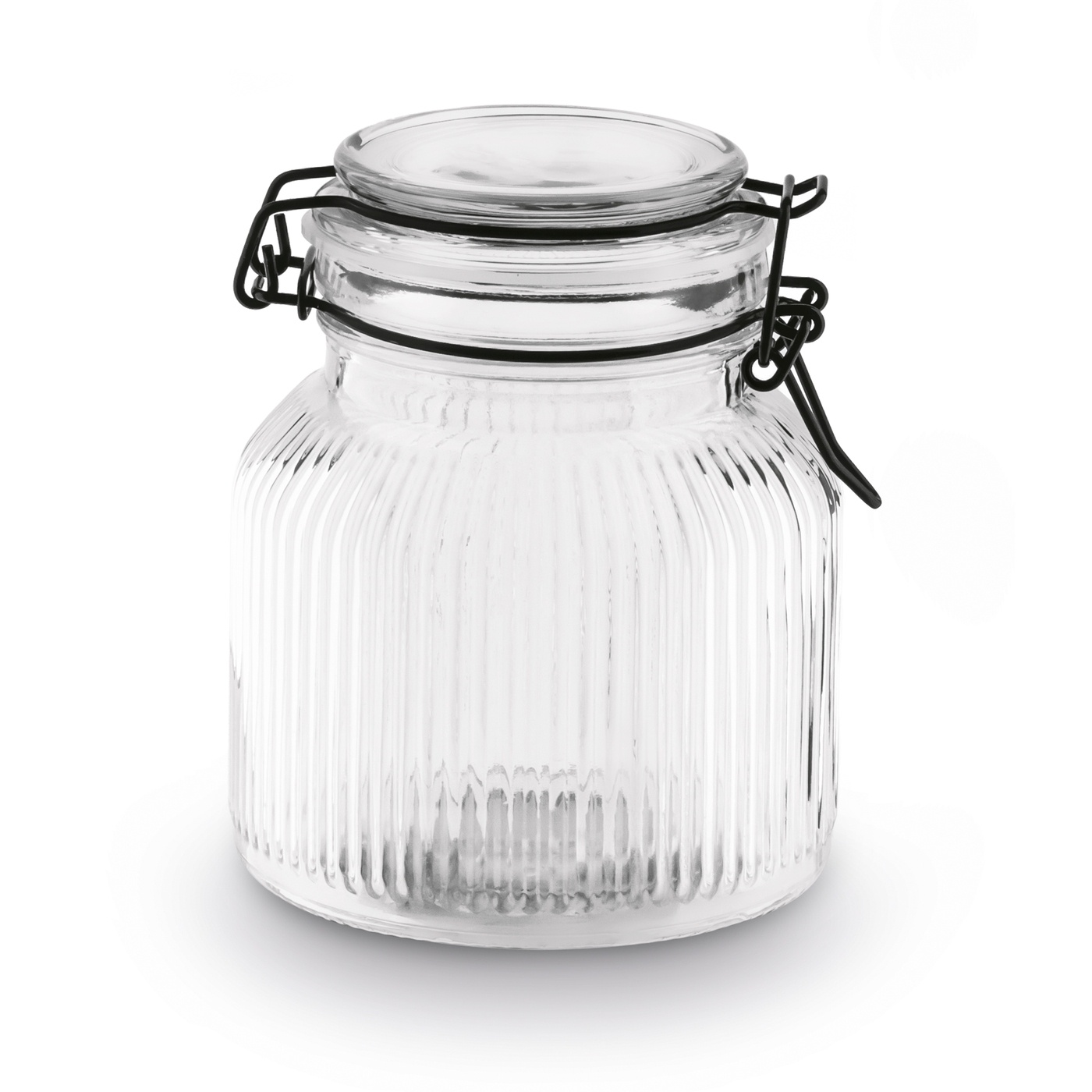 Metalowy klips w eleganckim czarnym kolorze gwarantuje stabilne zamknięcie, a silikonowa uszczelka zapewnia pełną szczelność. Taka konstrukcja zapobiega dostawaniu się powietrza i zapachów z zewnątrz, a także przeciwdziała utracie aromatu przechowywanych produktów. Słoik świetnie sprawdzi się zarówno w kuchni, jak i w spiżarni lub na otwartych półkach, pełniąc również funkcję dekoracyjną.